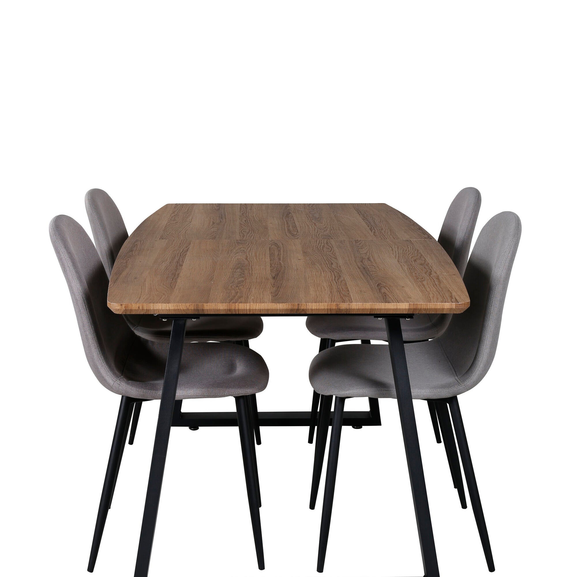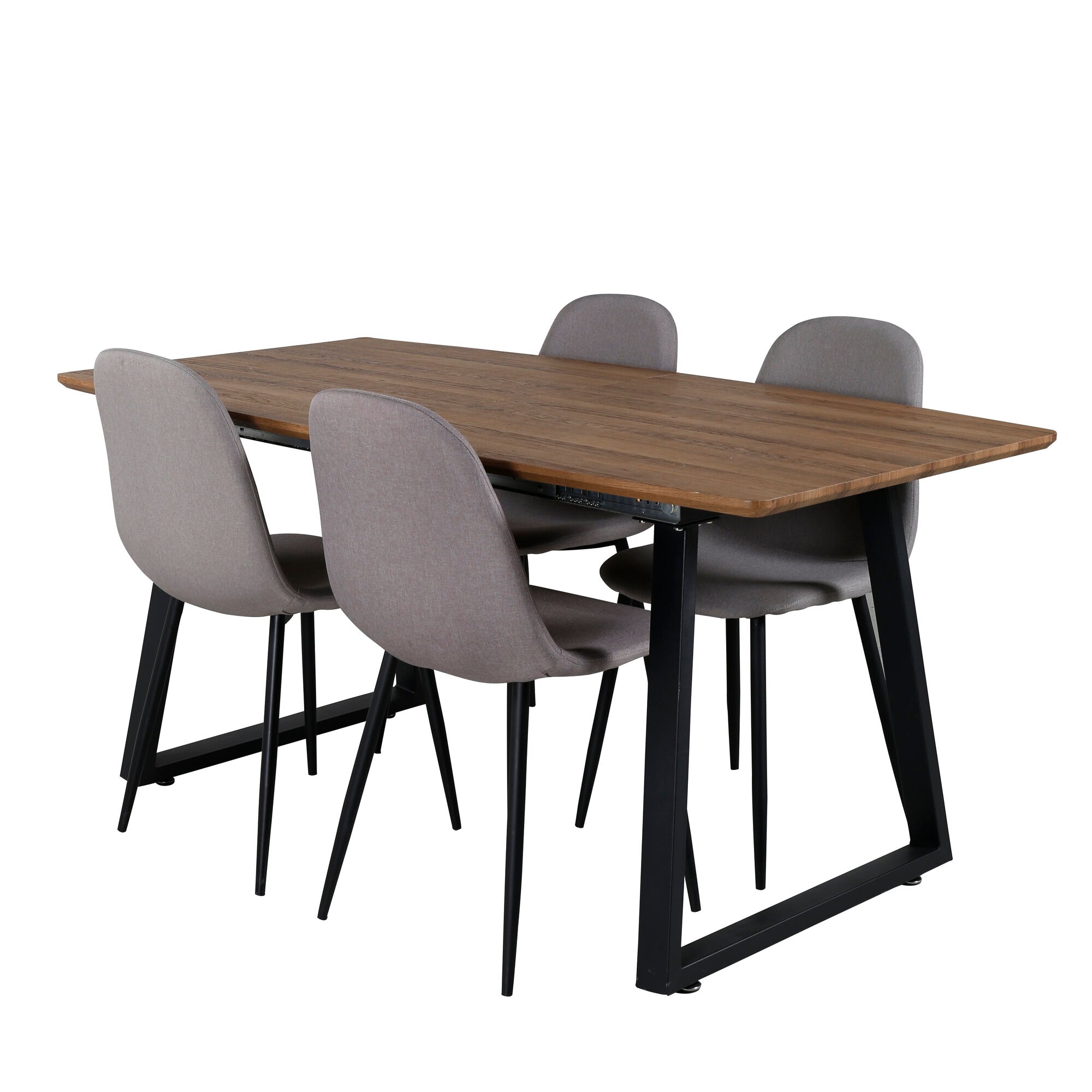 Jídelní stůl Inca - 160/200*85*H75 - Dub / Černá + Židle Polar - Šedá látka Černé nohy _4