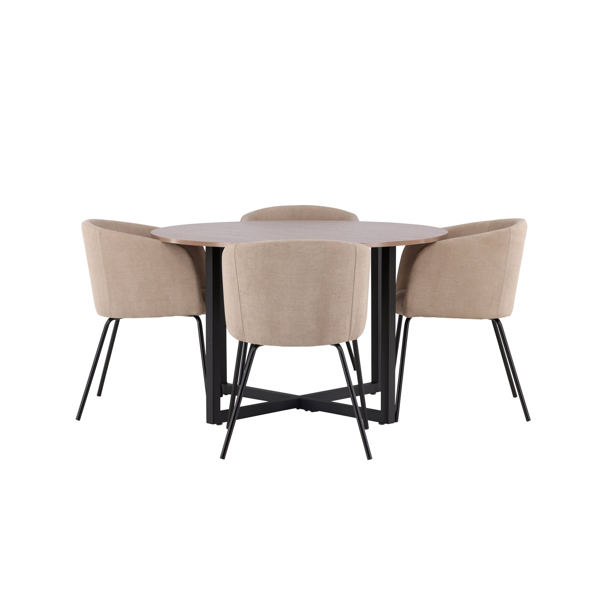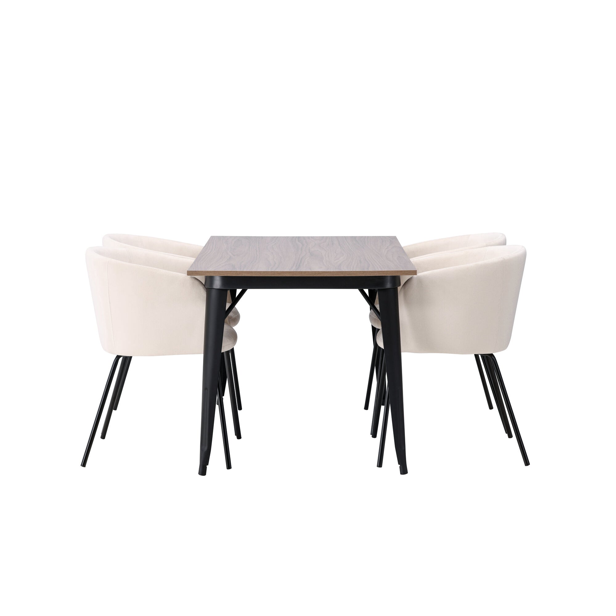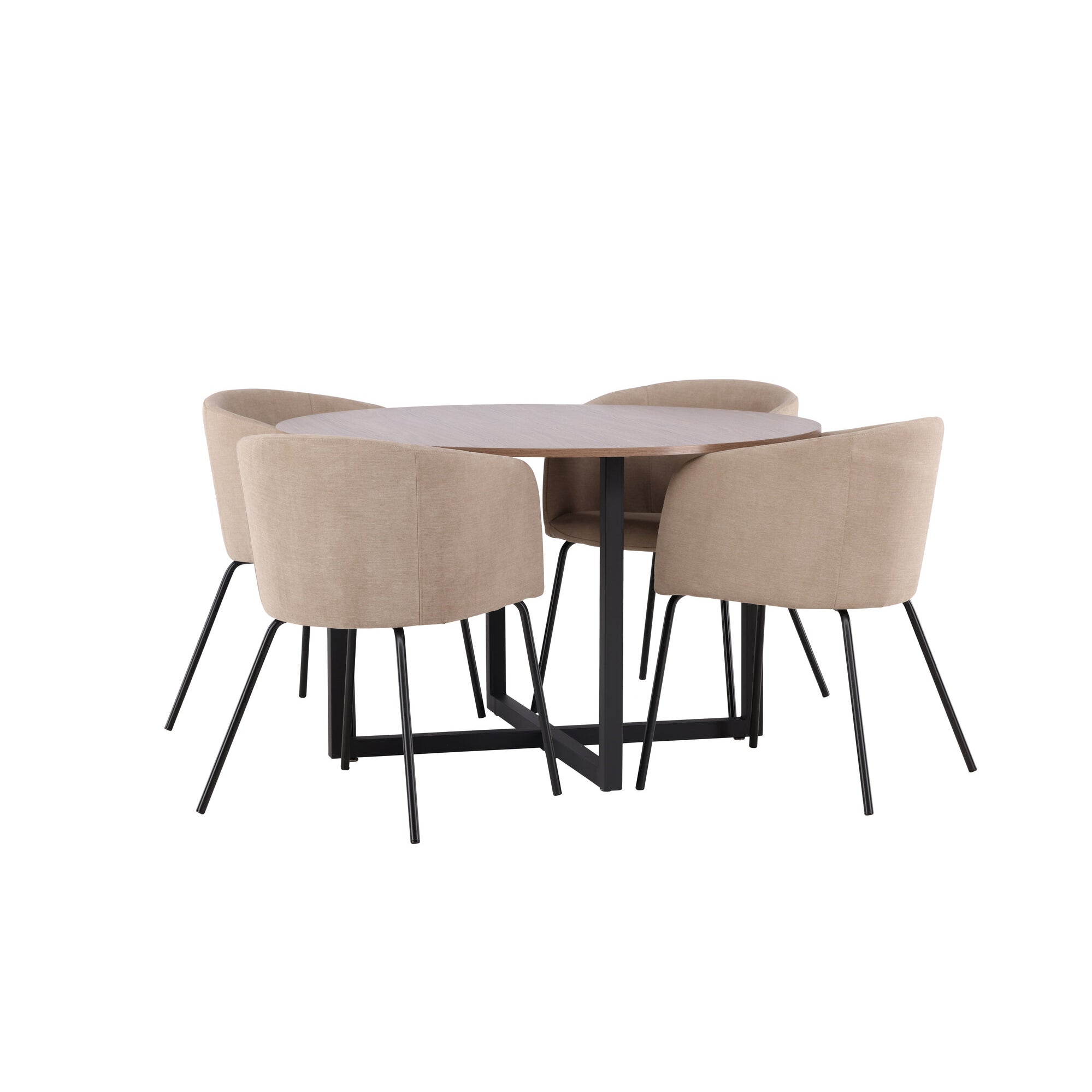 Jídelní stůl Durango – černá / ořechová MDF + židle Berit – černá / béžová látka (polyesterové prádlo) _4