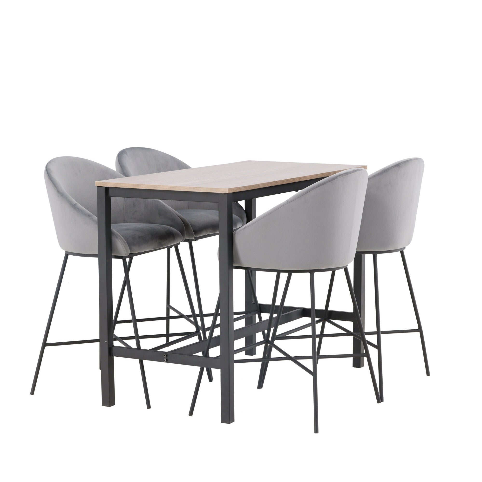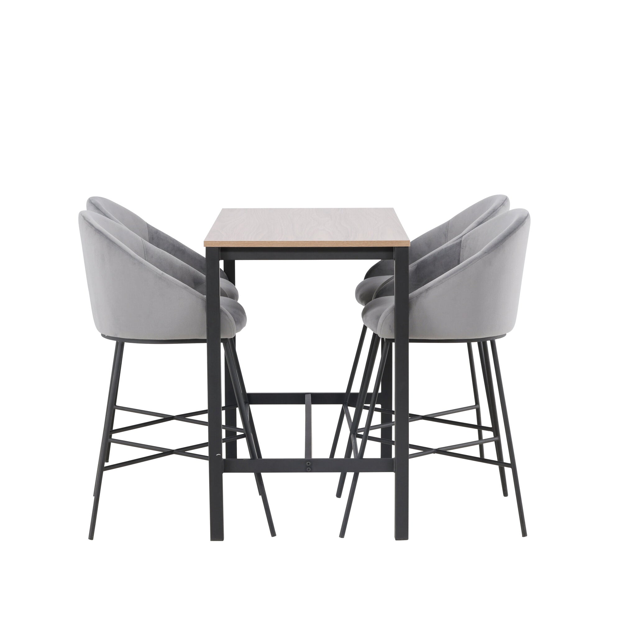 Camden Barový stůl – ořech / ořech MDF + sametová barová židle – černá / tmavě šedá sametová _4