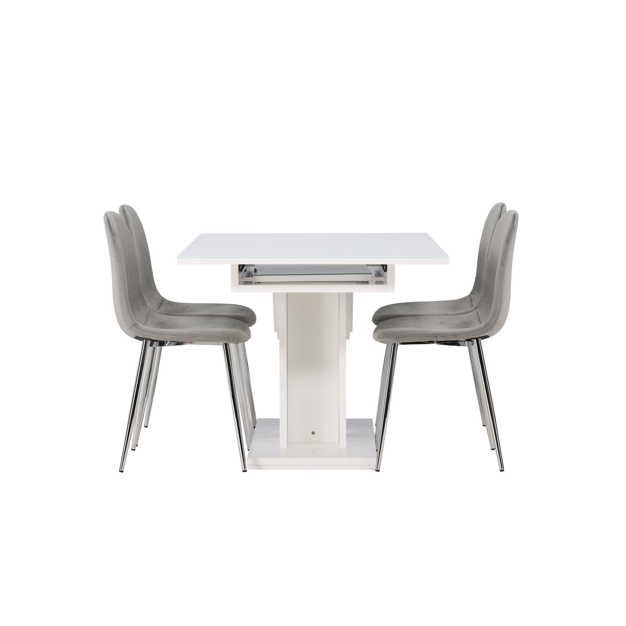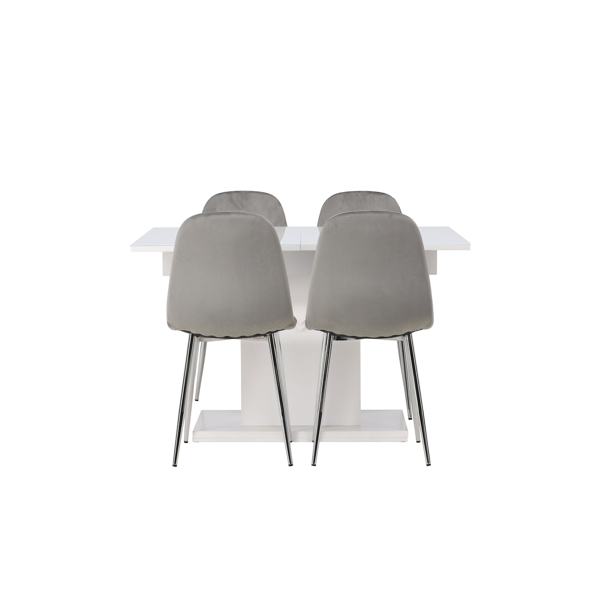 Jídelní stůl Pluto 120/160*90- Bílá / MDF sklo +Jídelní židle Eva - Světle šedá / Světle šedá Velvet _4