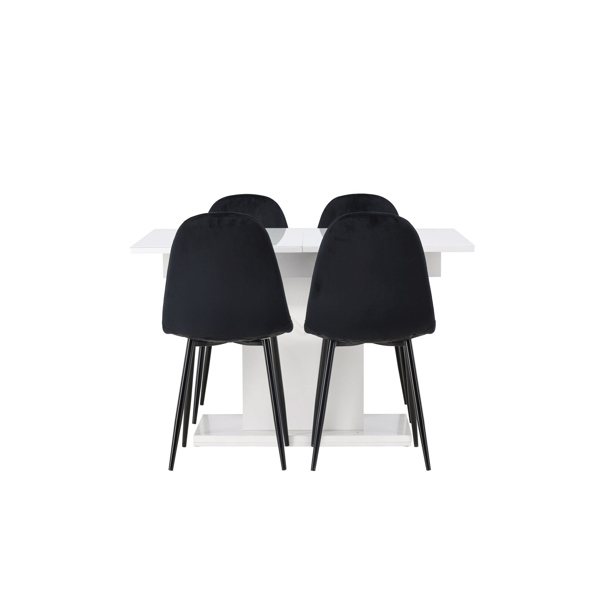 Jídelní stůl Pluto 120/160*90- Bílá / Sklo MDF + Jídelní židle Polar - Černé nohy / Černý samet _4