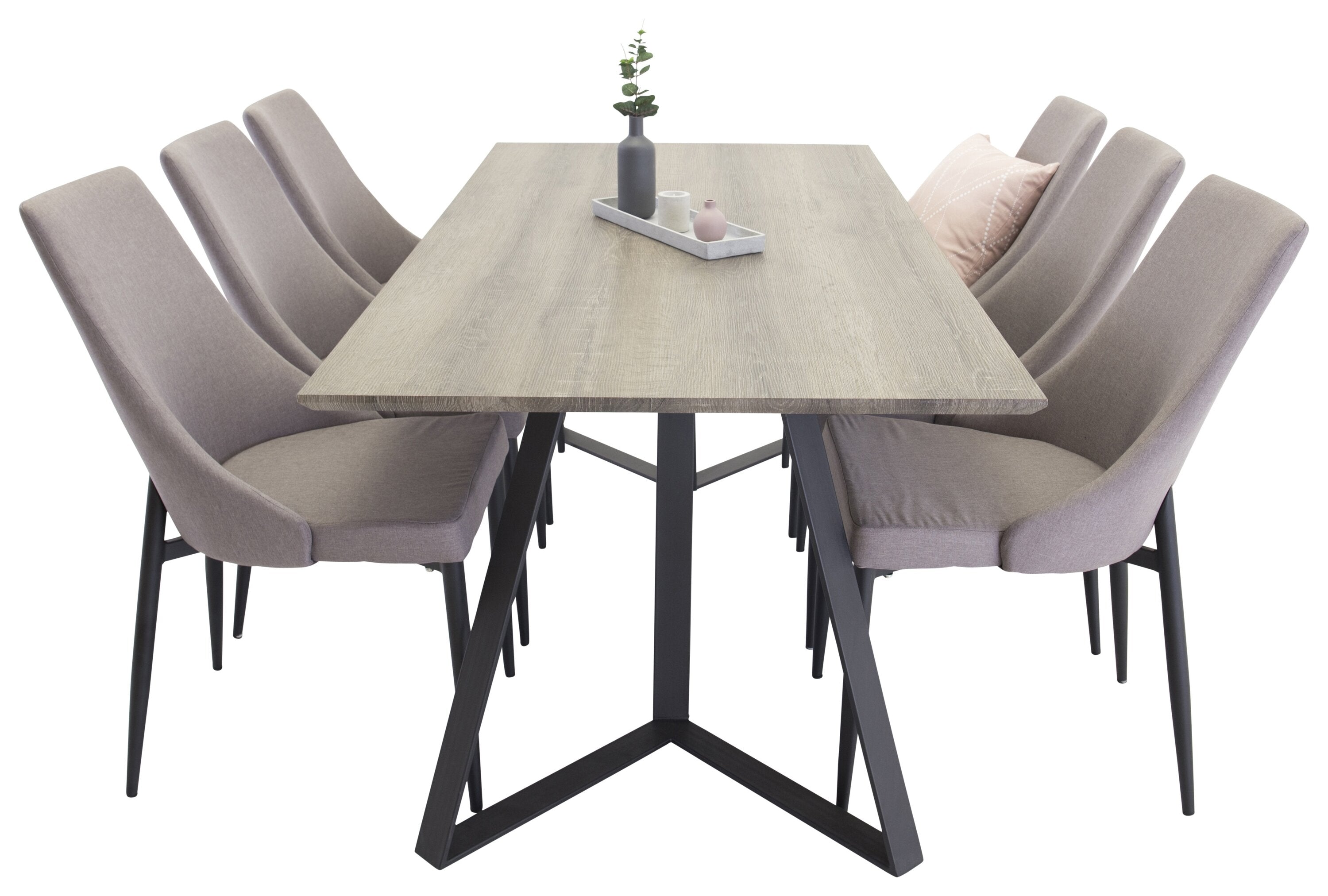 Inca Matbord - Svart / Oljad Ek - 160/200*85*H75+X-Matstol - Svart / Mellangrå_4