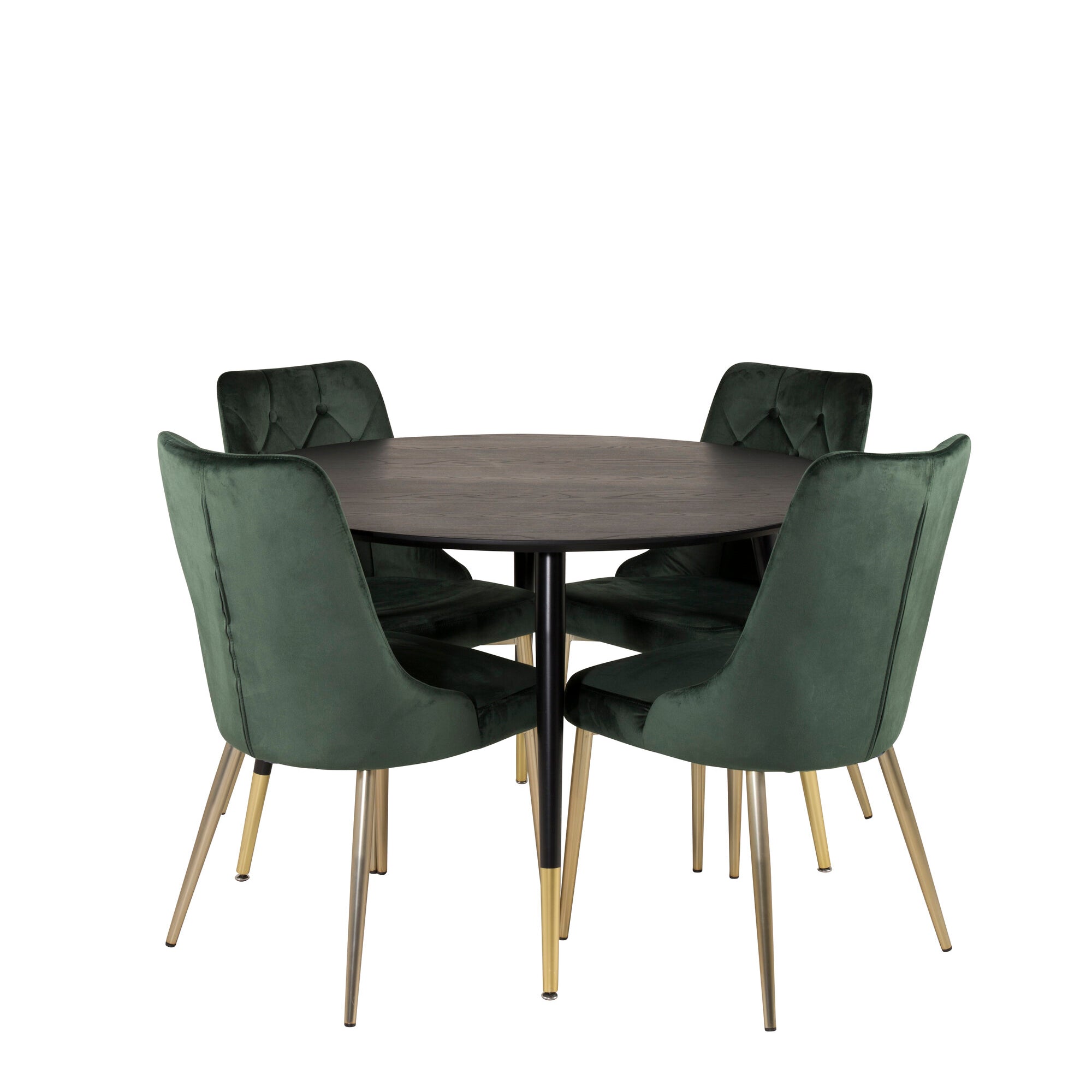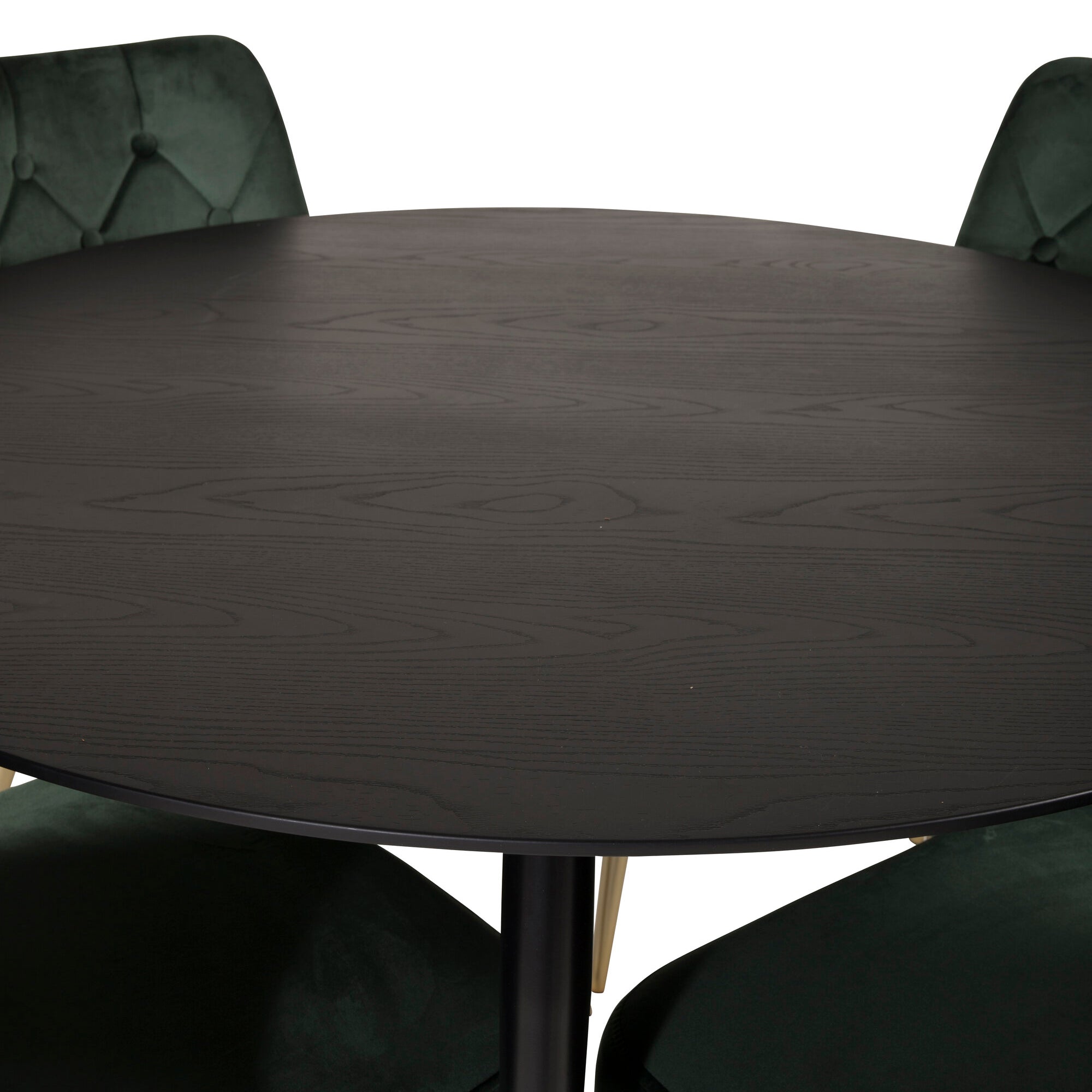 Dipp jídelní stůl - 115 cm - Černá dýha / černé nohy s mosazným dippem + Velvet Lyx Matstol - Matt Mässing / Mossgrön Sammet_4