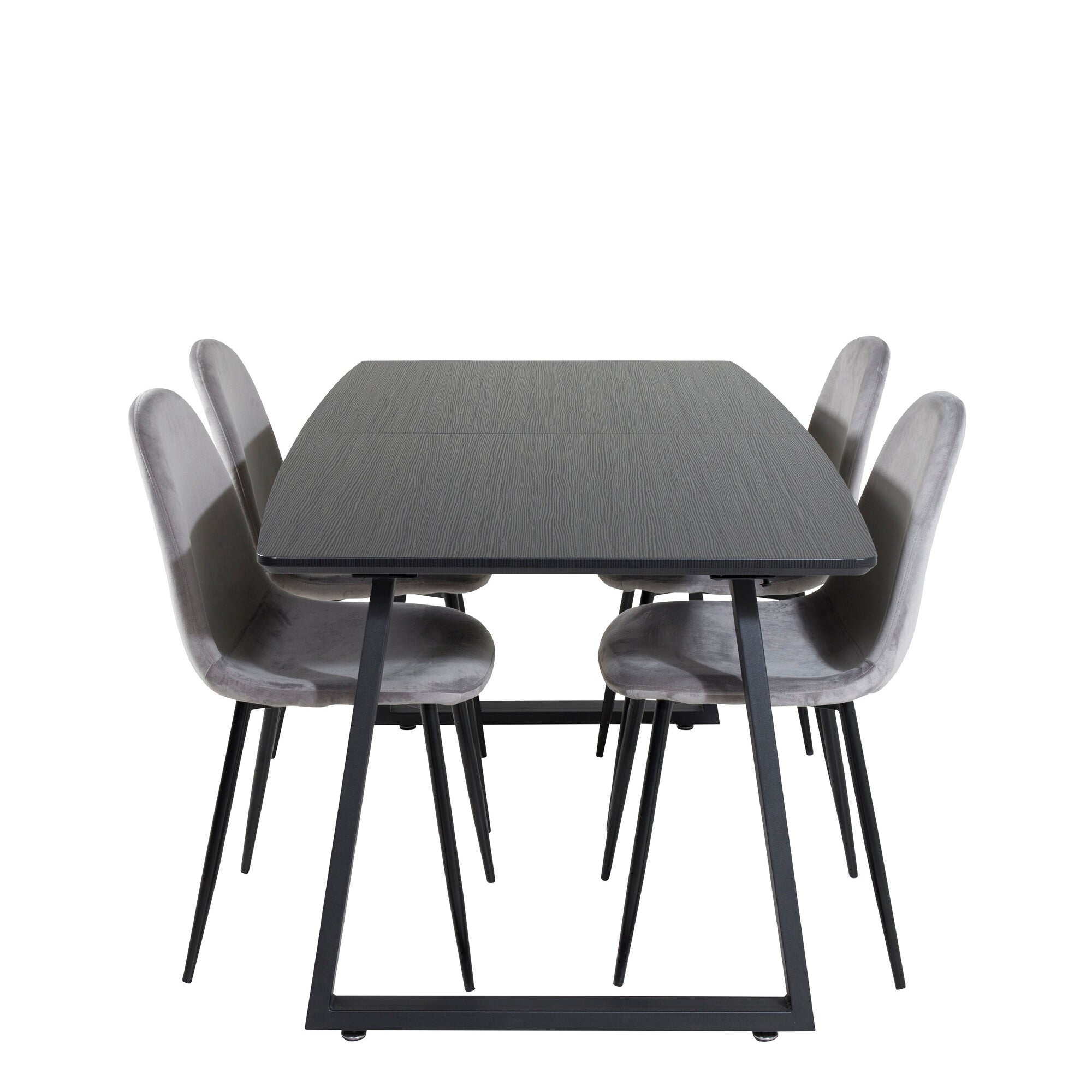 Inca Extentiontable - Černá deska / černá Nohy+Polar Jídelní Židle - Černé nohy / Světle šedá Velvet (ersätter 19902-885)_4