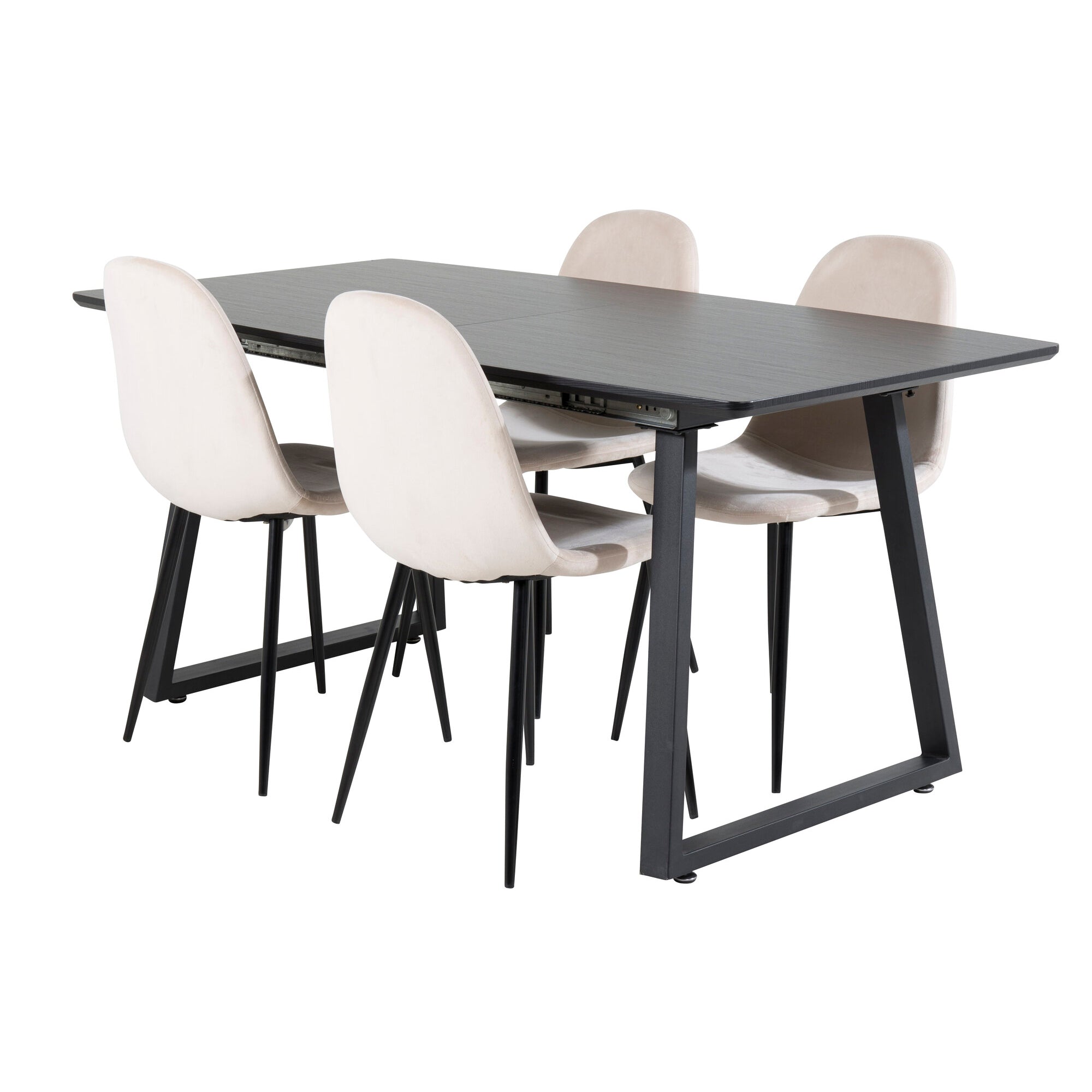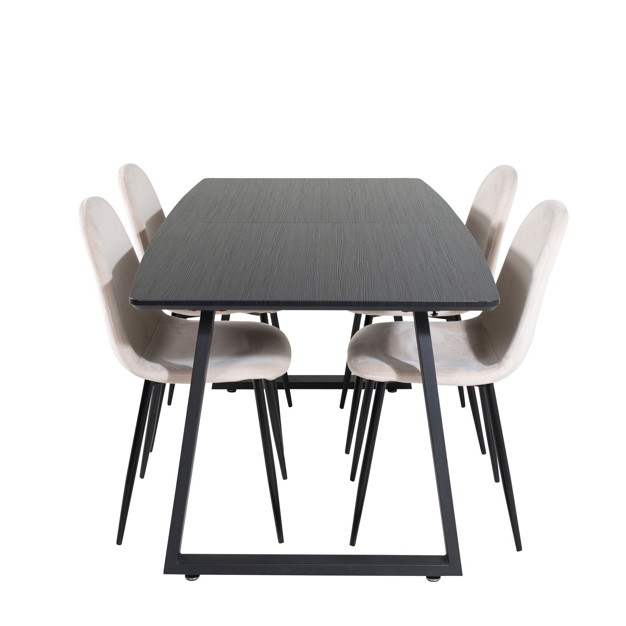 Inca Extentiontable - Černá horní deska / černé nohy + jídelní židle Polar - černé nohy / béžový samet (ersätter 19902-880)_4