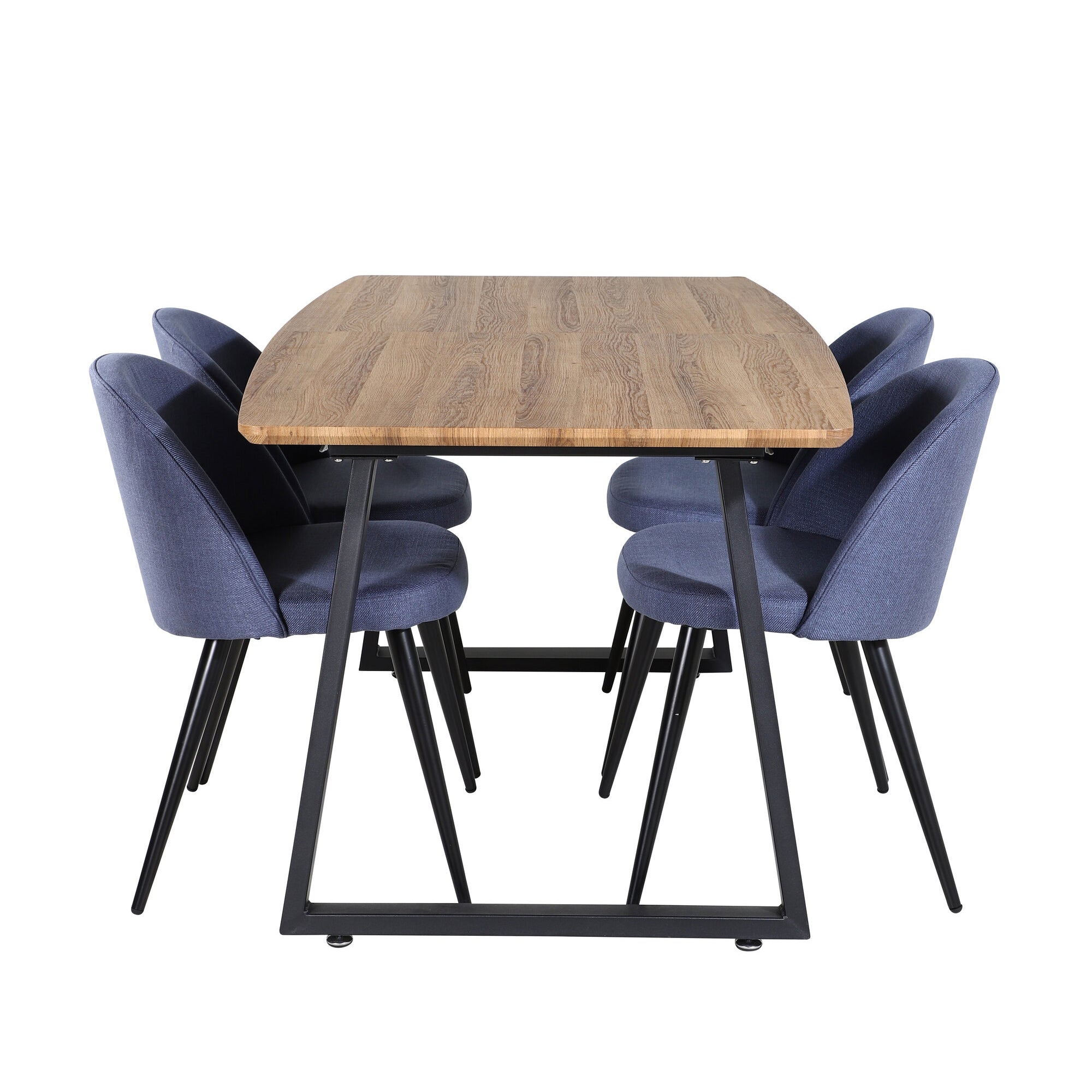Jídelní stůl Inca - 160/200*85*H75 - Dub / Černá + Sametová jídelní židle - Černé nohy - Modrá látka_4
