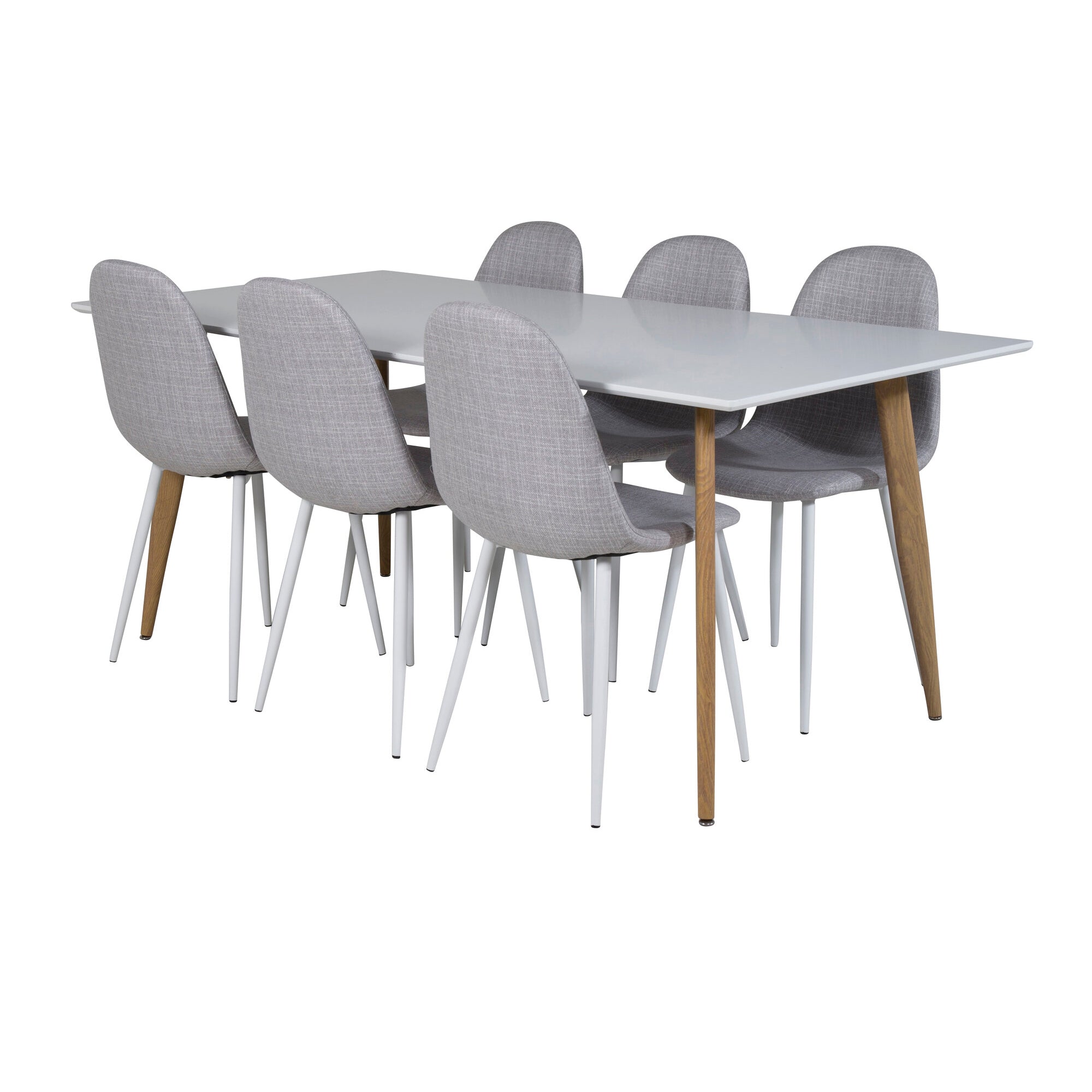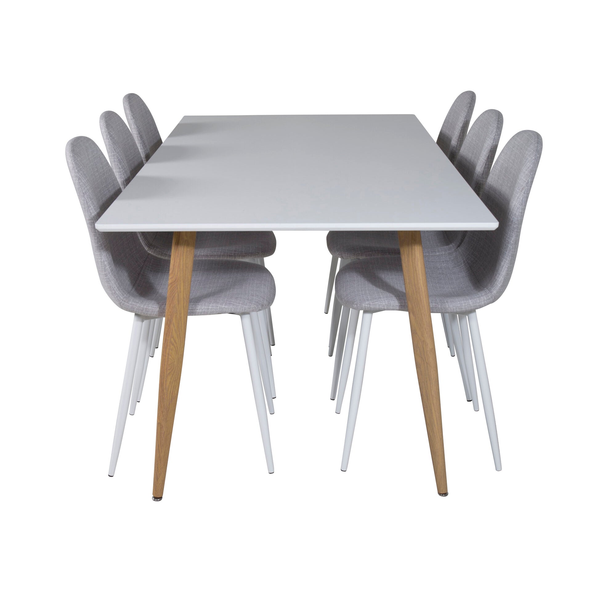 Polar Matbord - Ek-Look / Vit- 180*90*H75 +Jídelní židle Polar - Bílé nohy - Světle šedá látka _6