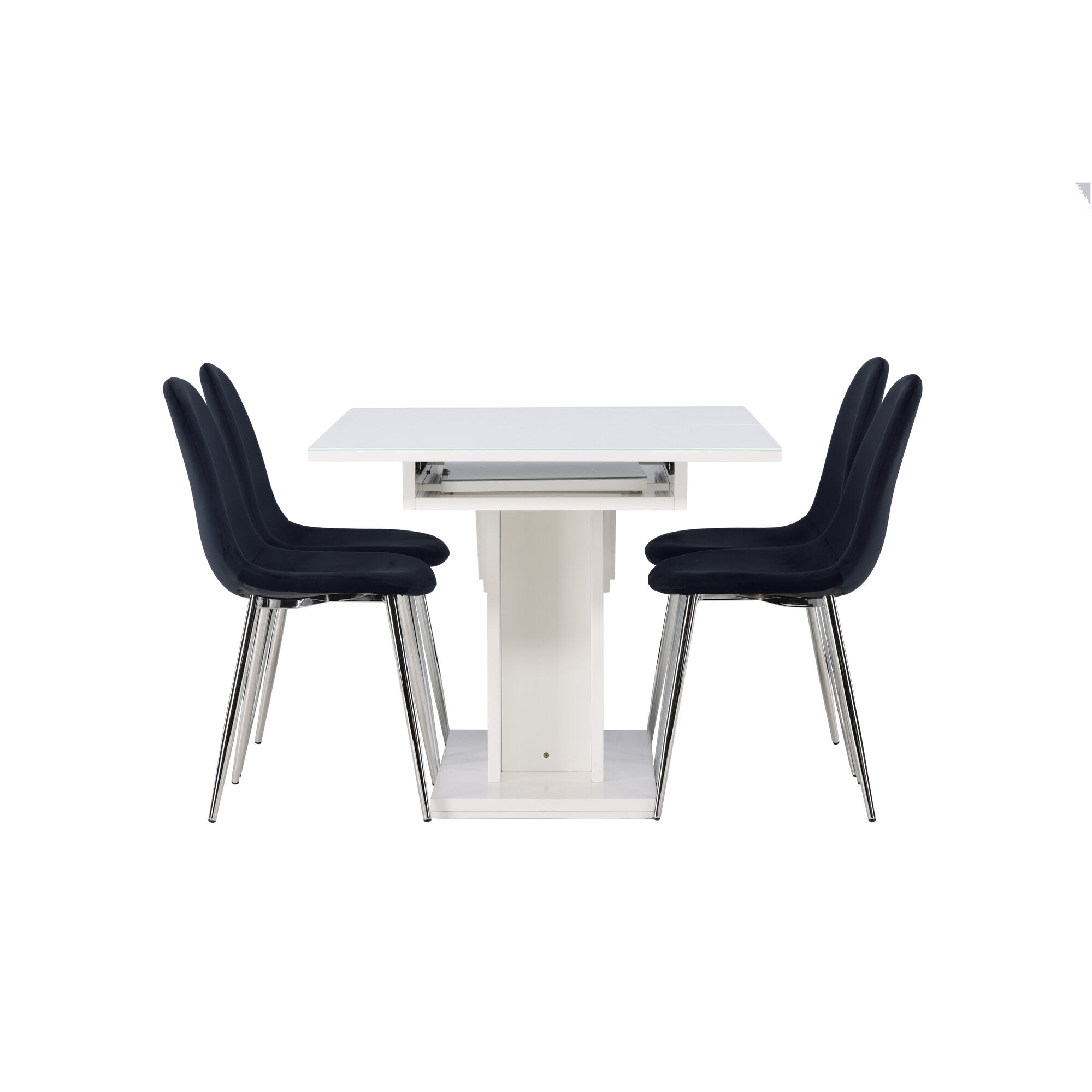 Jídelní stůl Pluto 120/160*90- Bílá / Sklo MDF + Jídelní židle Polar - Black Velvet / Chrome _4