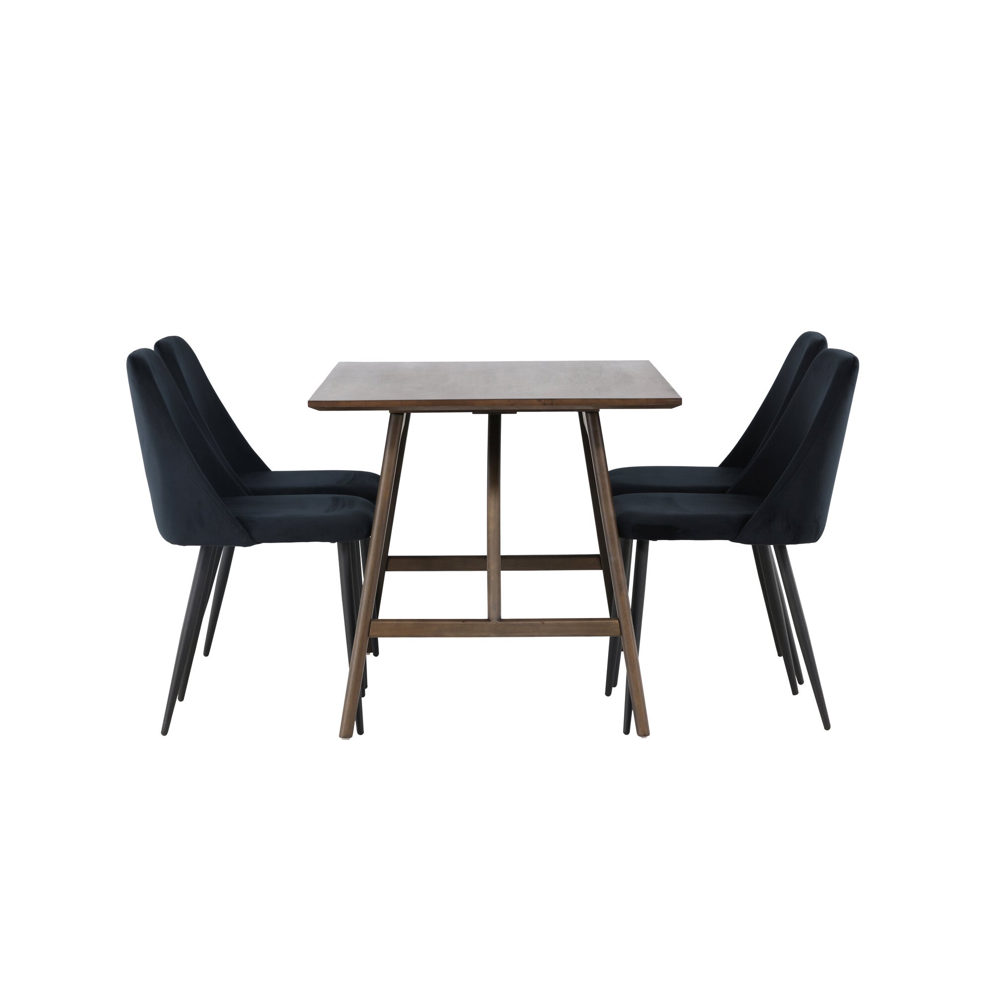 Jídelní stůl Durango - černá / ořechová MDF + jídelní židle Selma - černá / černý samet _4