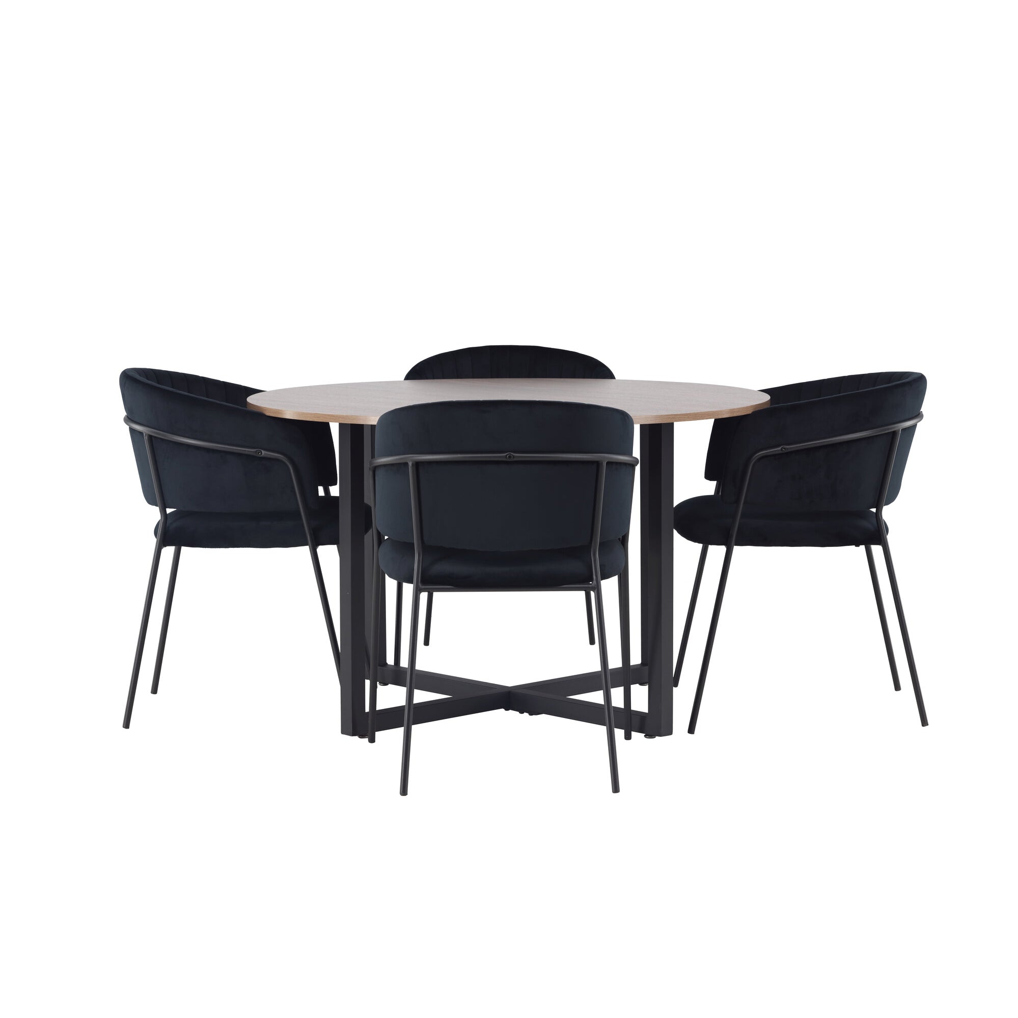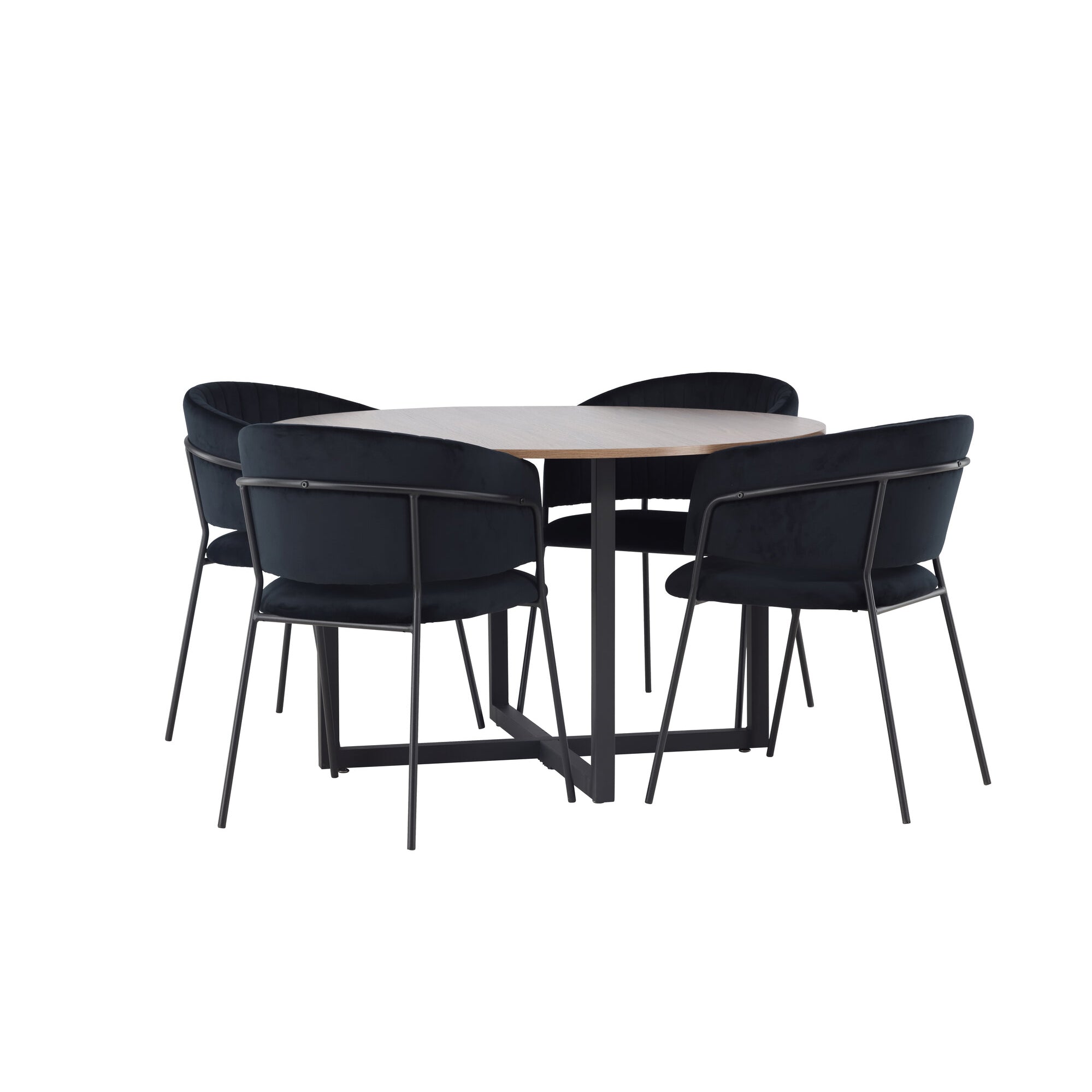 Jídelní stůl Isolda 140*75 - Nature / Nature MDF + Jídelní židle Polar - Černé nohy / Black Velvet _4