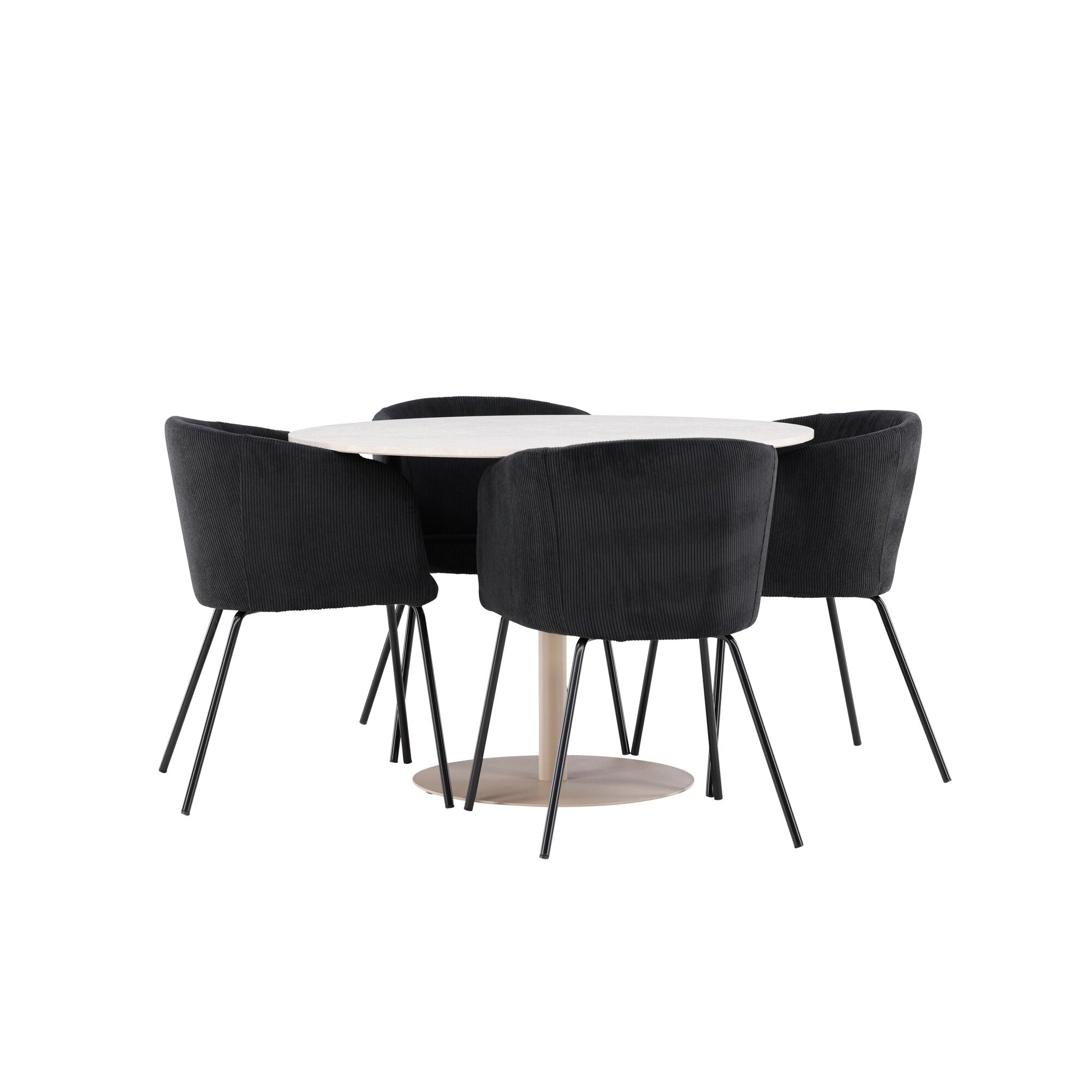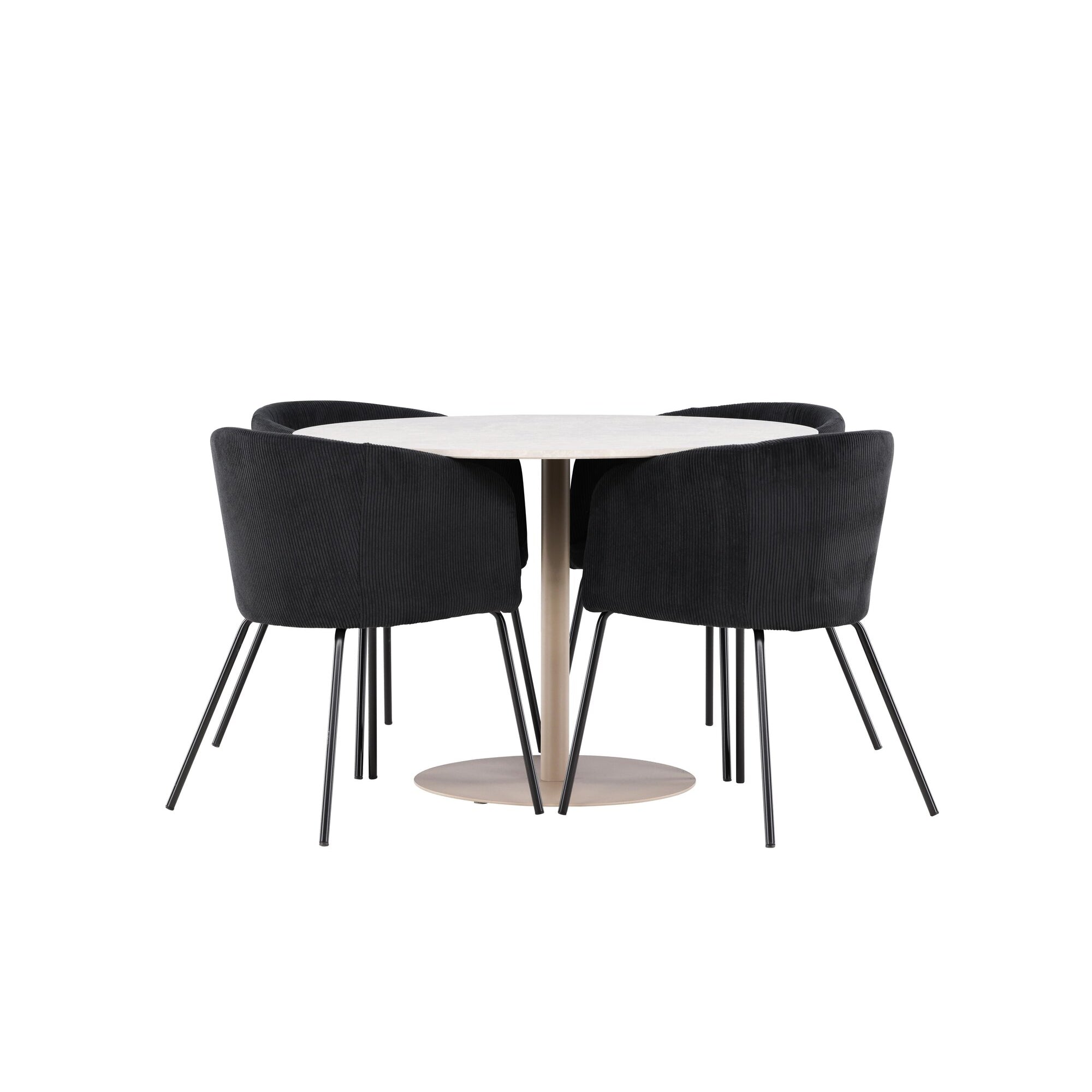 Jídelní stůl Dipp - 115 cm - Černá dýha / Celé černé nohy + Komfortní jídelní židle - Černé nohy / Dusty Pink Manšestr _4