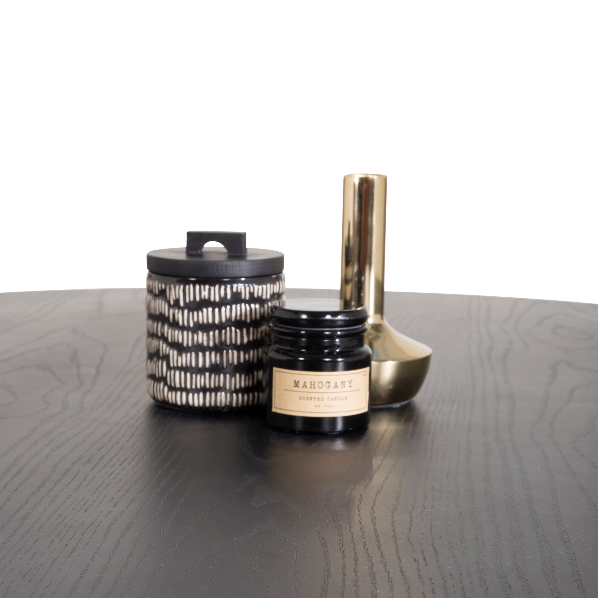 Bootcut kulatý jídelní stůl - černá / černá Fanéer + sametová jídelní židle - světle šedá / černá _4