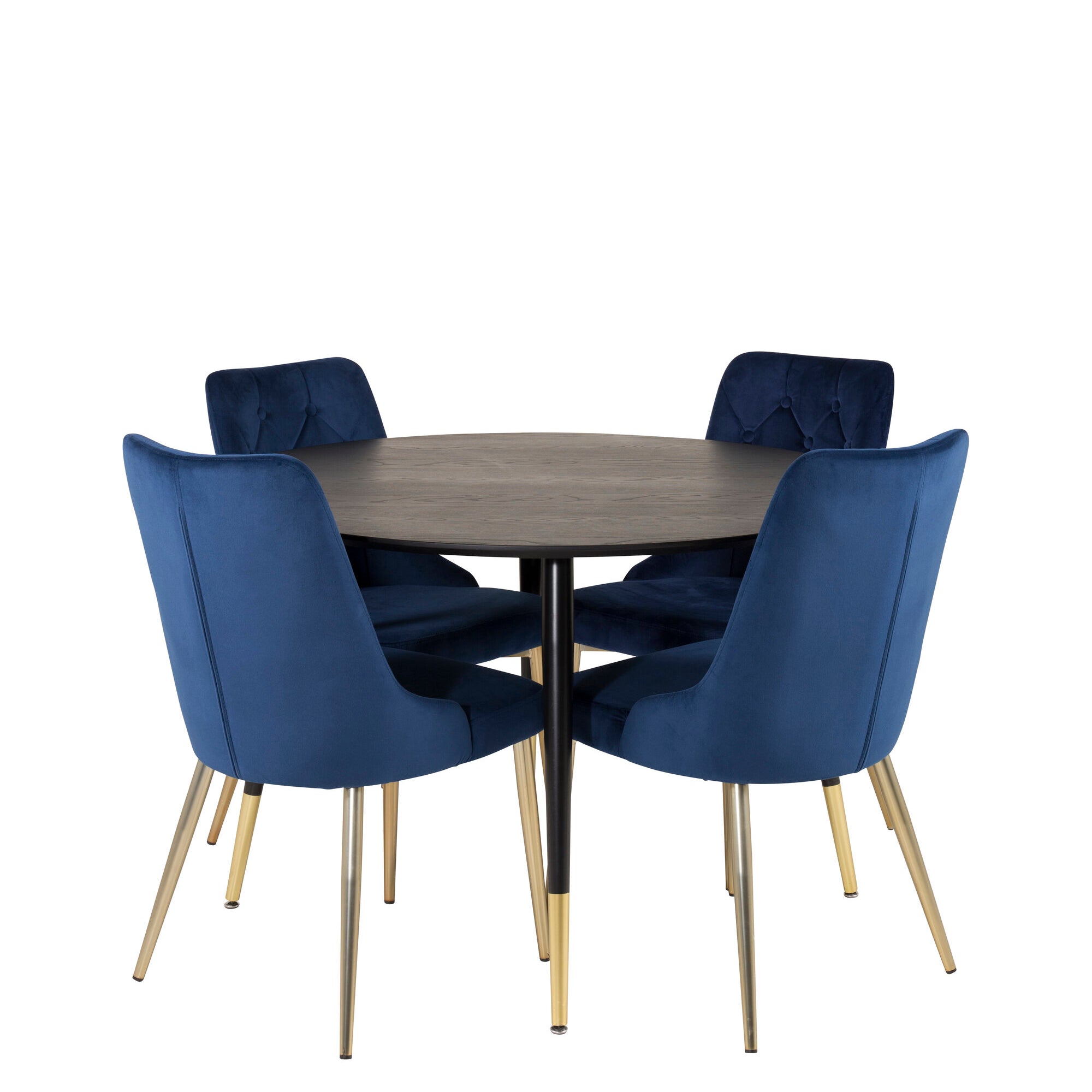 Dipp Jídelní stůl - 115 cm - Černá dýha / černé nohy s mosazným dippem - Velvet Deluxe Židle - Modrá/Matná mosaz noha 4
