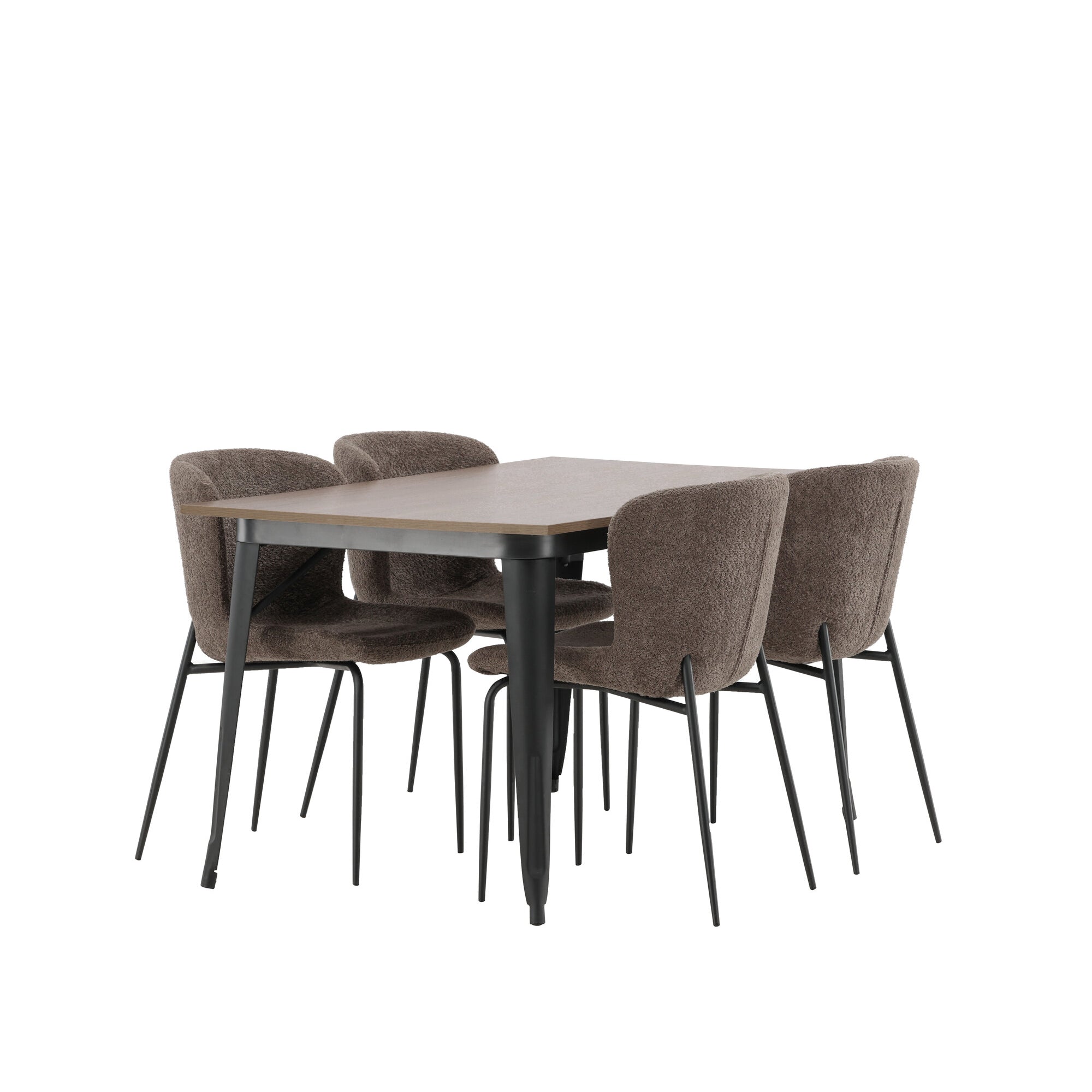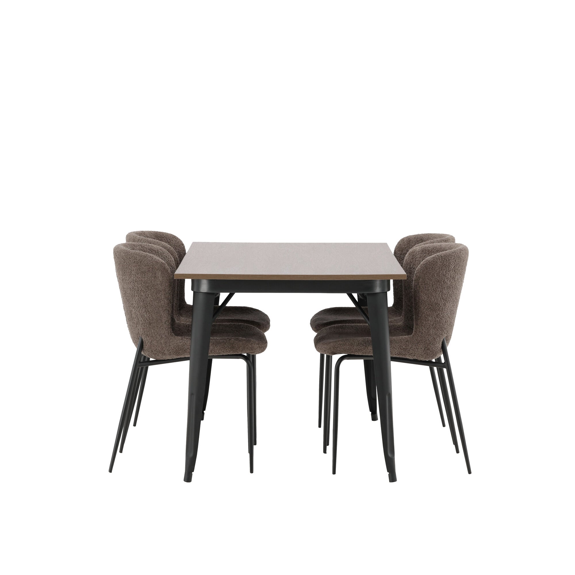 Diego Cafetable Hliník – Černá / Hnědá Aintwood – Obdélníkový 70*70/130* + Bois Jídelní židle Ocel – Černá / Tmavě šedá Lano _2