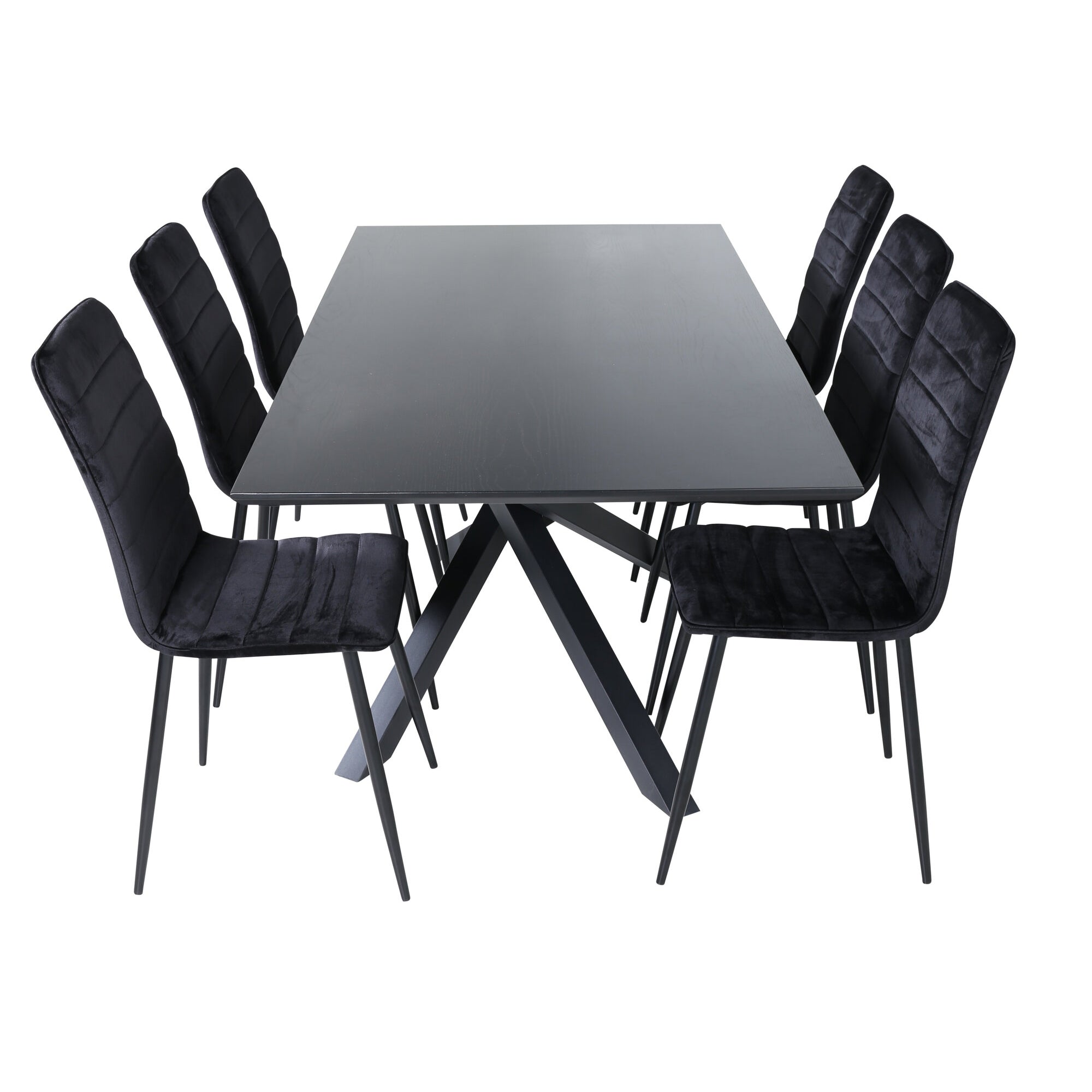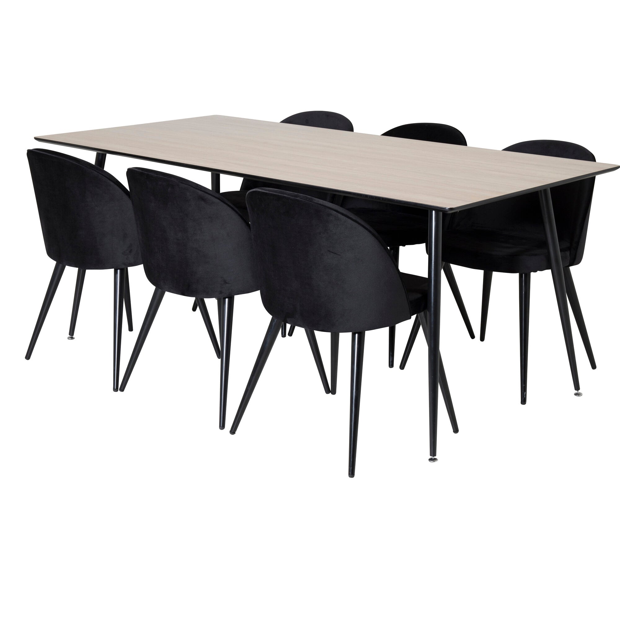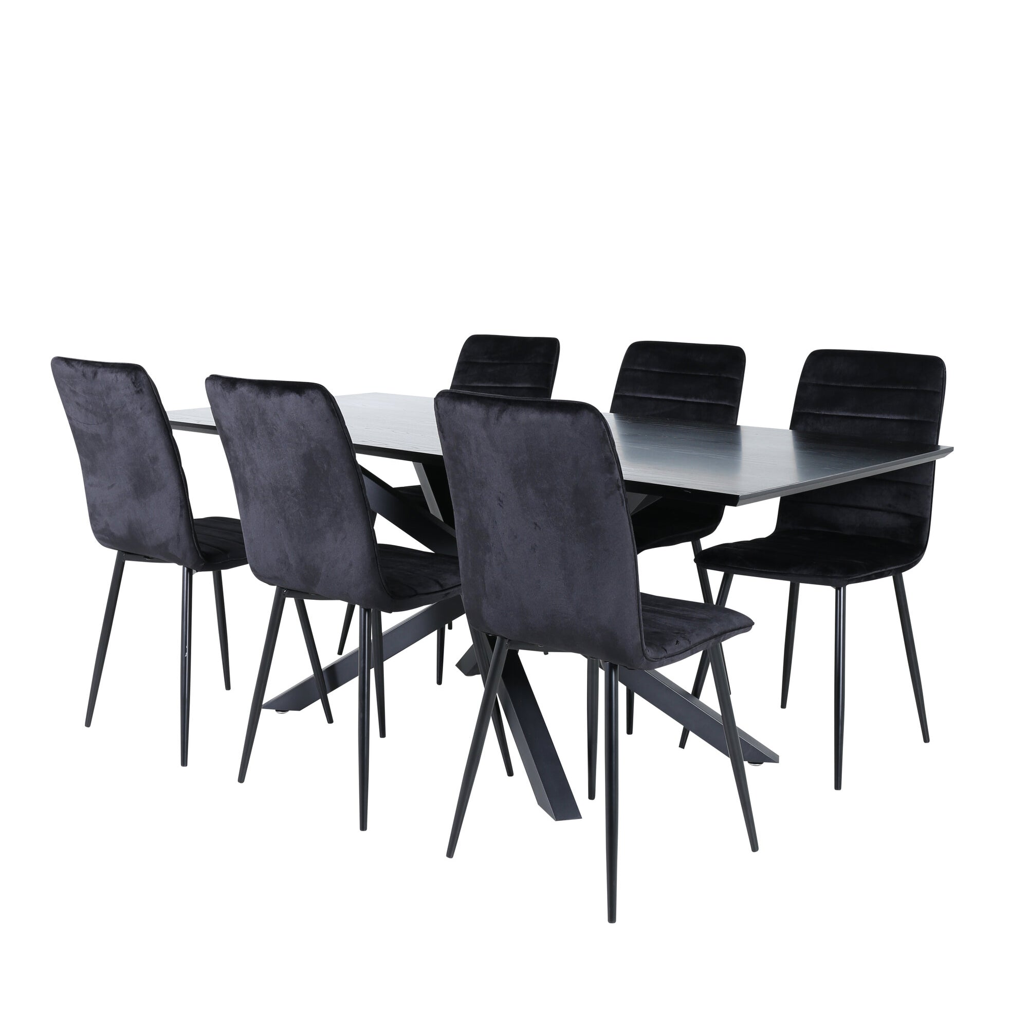 Jídelní stůl Silar - 180 cm - "Wood Look" melamin / černé nohy + sametová jídelní židle - černá / černá_6