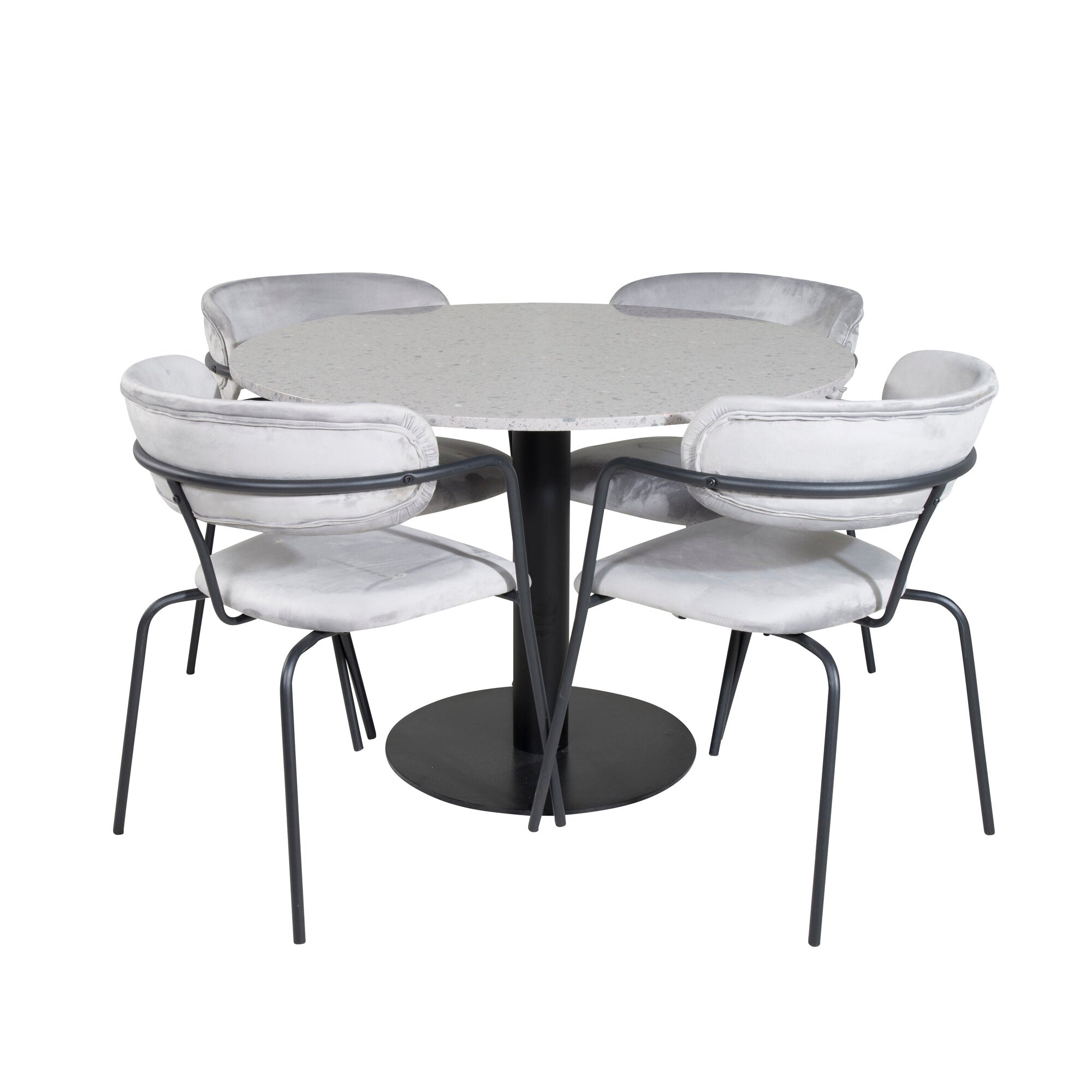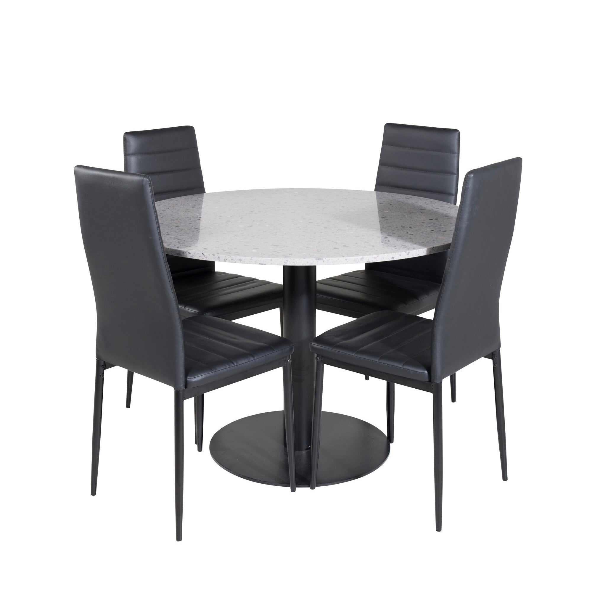 Jídelní stůl Razzia ø106 cm - Šedá / Černá + Slim jídelní židle s vysokým opěradlem - Černé nohy - Černá PU_4