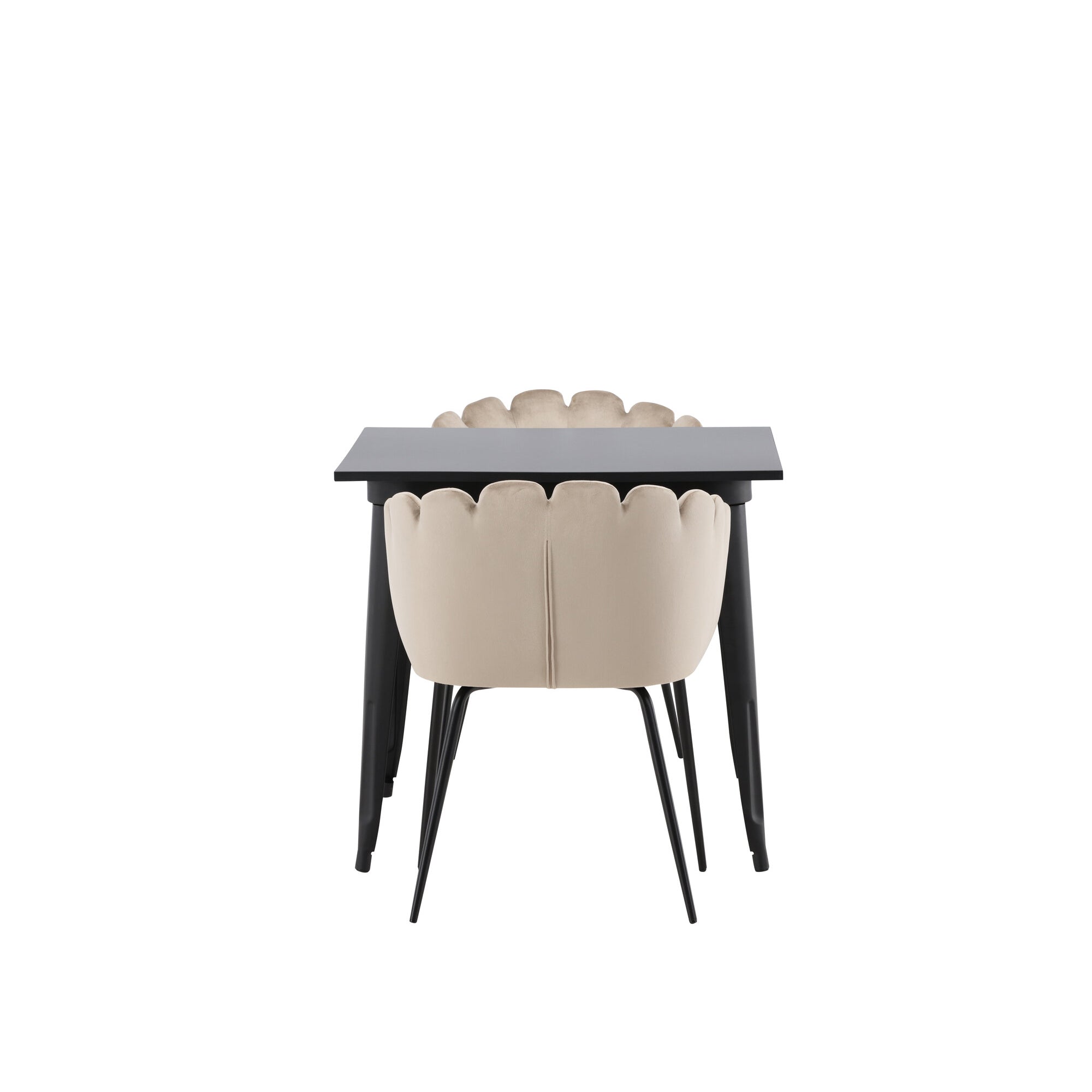 Jídelní stůl Tempe - Černá / Černá MDF + Židle Limhamn - Černá / Béžová Velvet _2