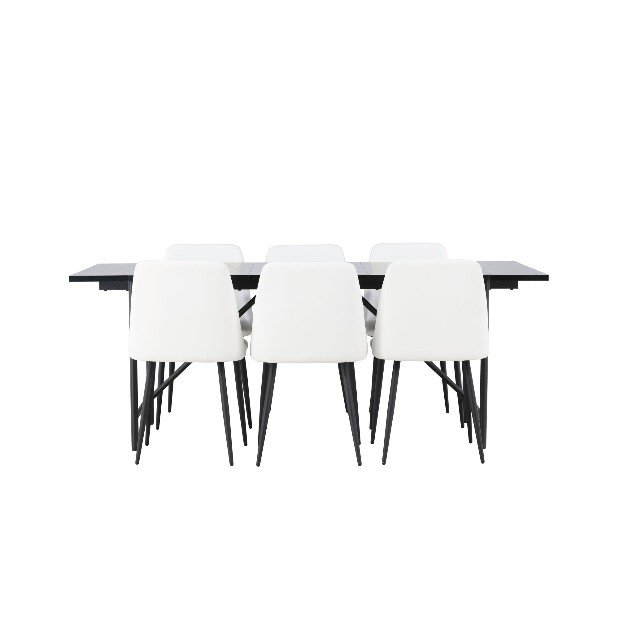 Astrid Jídelní stůl 200*75 - Matná černá / Matná černá MDF s dýhou + Noční jídelní židle - Černá / Bílá PU _6