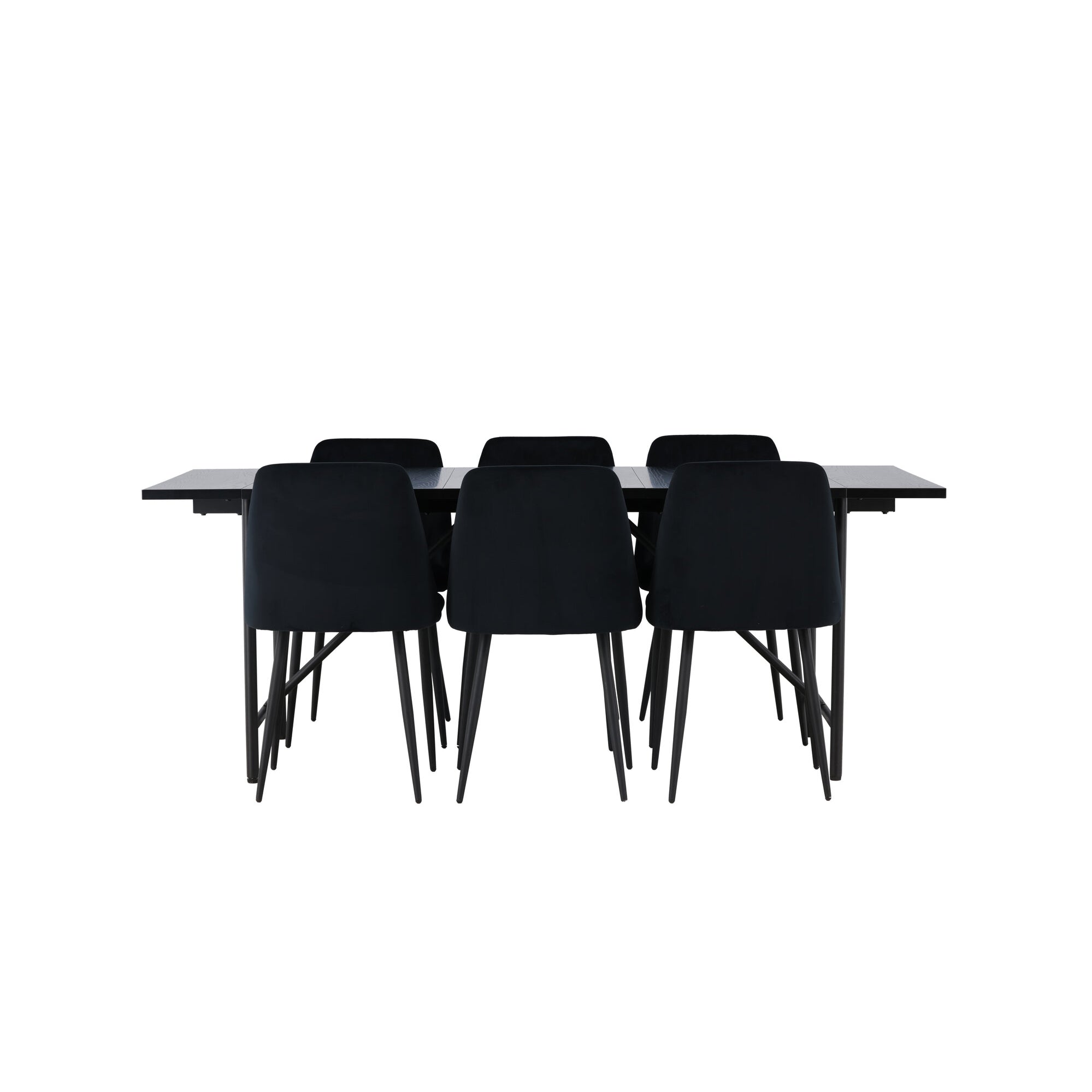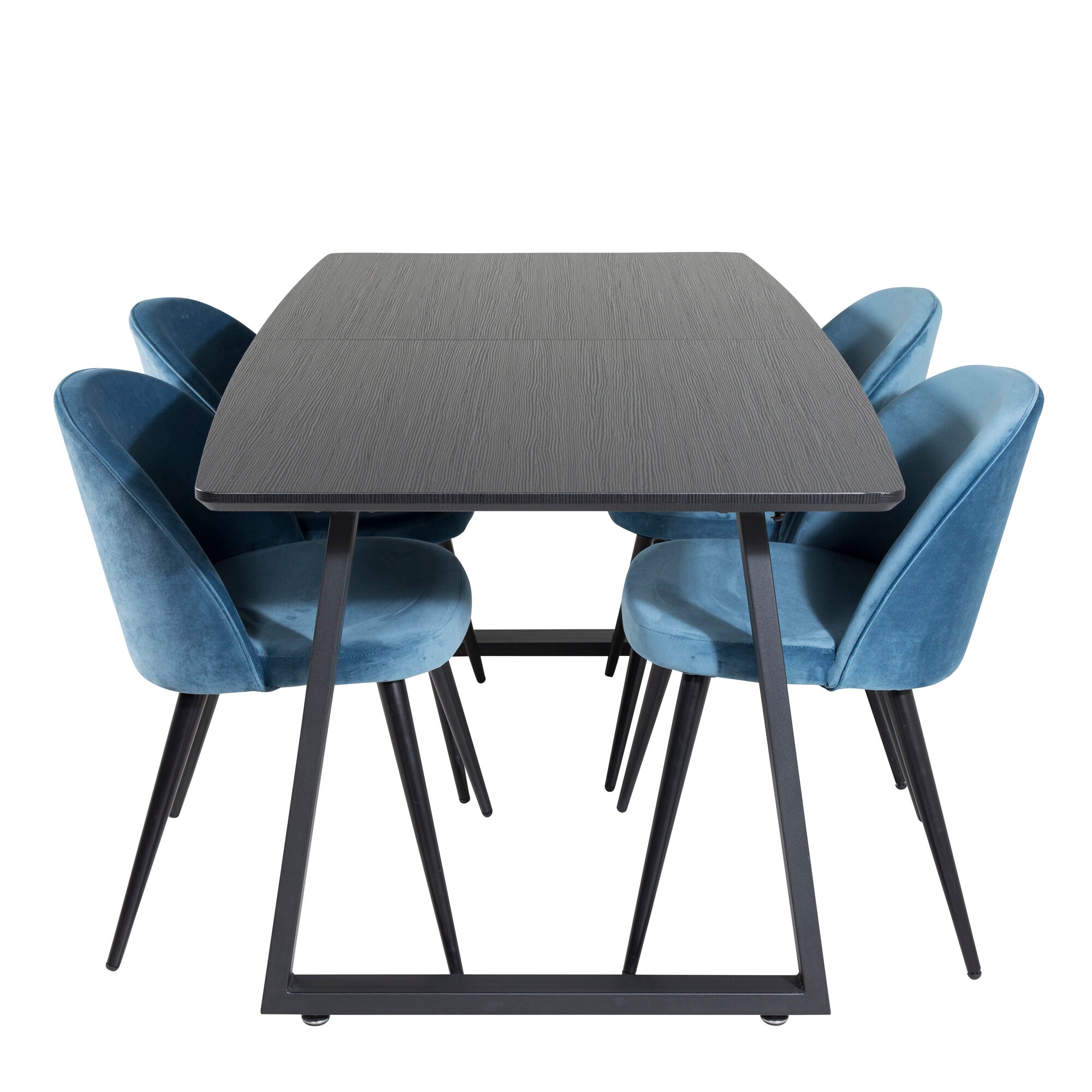 Inca Extentiontable - Černá deska / černá Nohy+Velvet Jídelní židle - Modrá / Černá_4