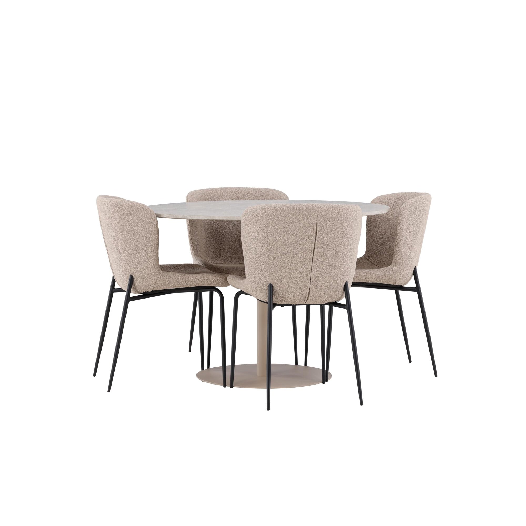 Kulatý jídelní stůl Bootcut - Černá / Černá Fanéer + Židle se sametovými stehy - Černá / Béžová látka (polyesterové prádlo) _4