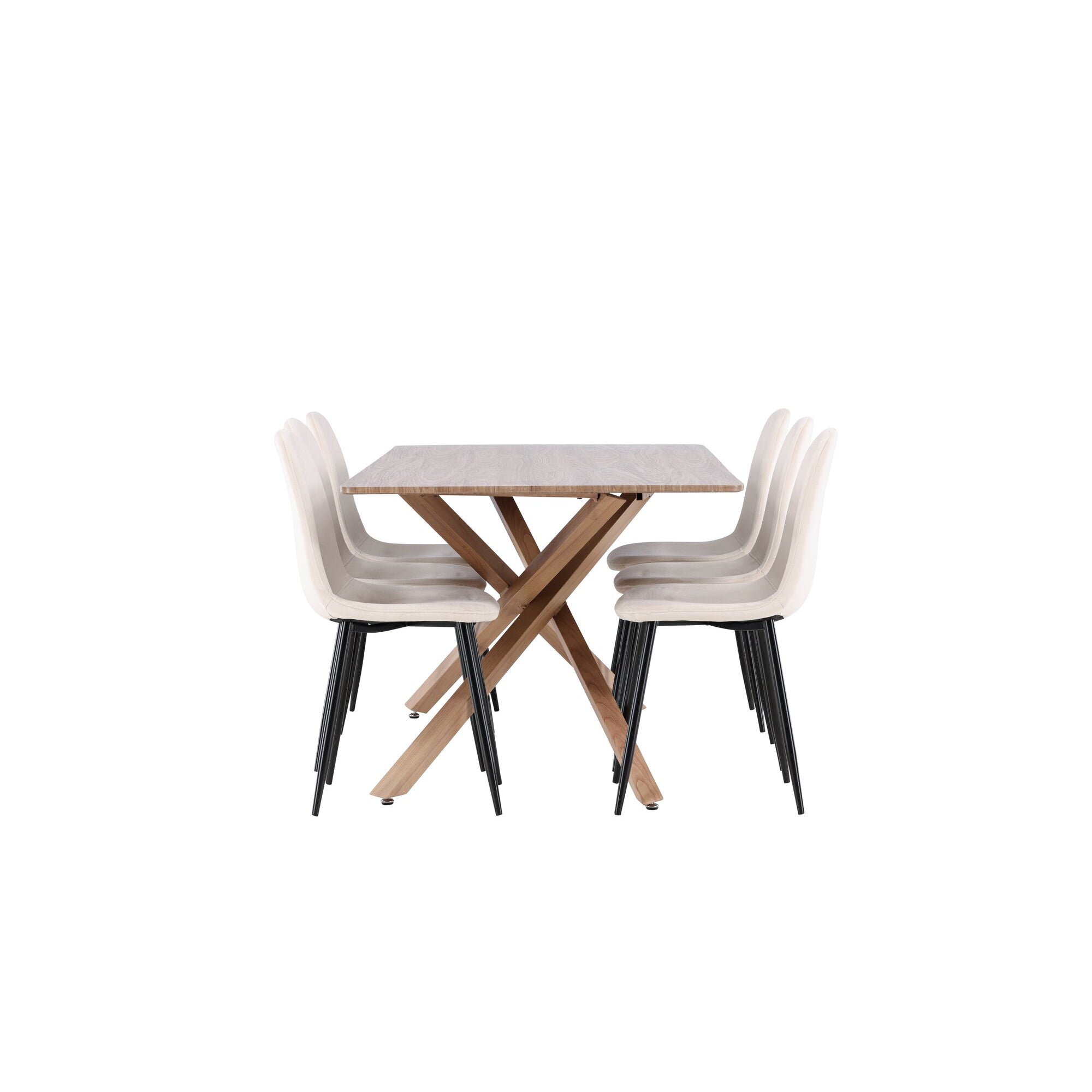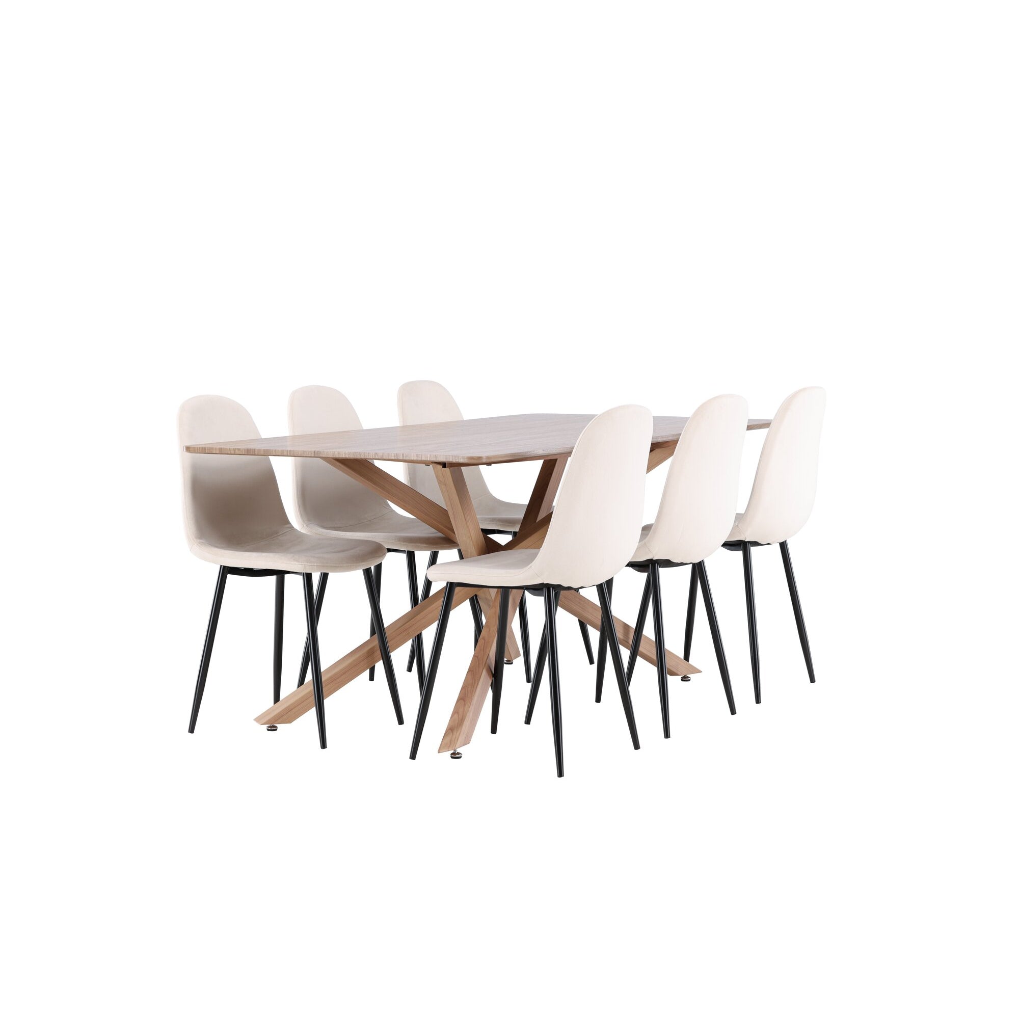 Andy Jídelní stůl 180*75 - Přírodní / Přírodní MDF + Jídelní židle Seda - Matná hnědá / Béžová látka _4