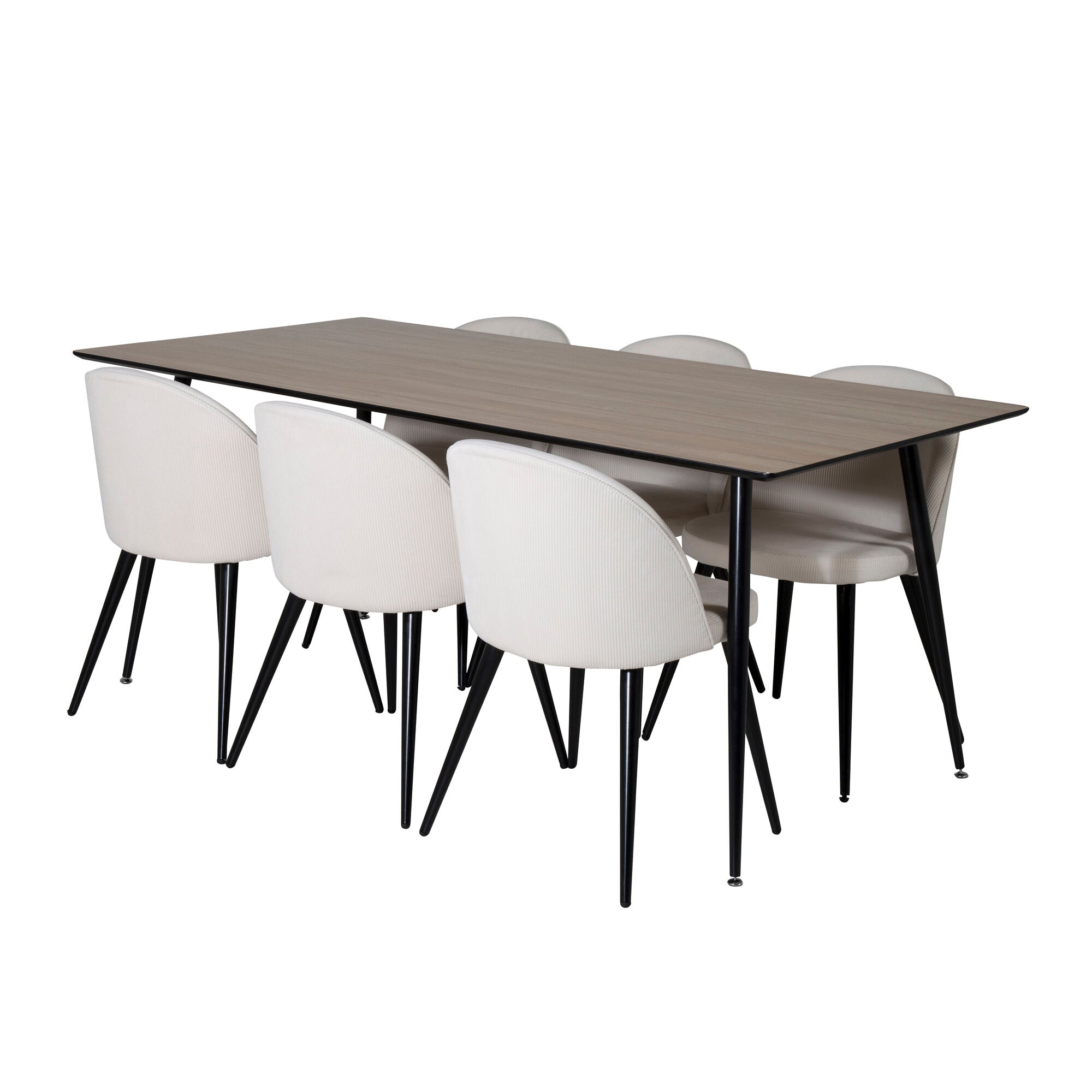 Jídelní stůl Silar - 180 cm - "Wood Look" melamin / černé nohy + sametová jídelní židle manšestr - béžová / černá_6