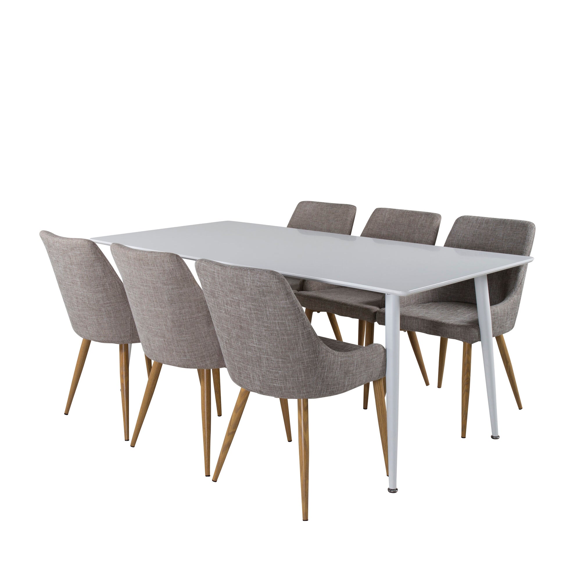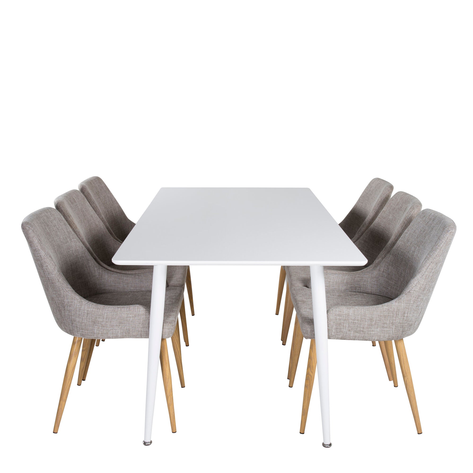 Polar Jídelní stůl 180 cm - Bílá deska / Bílé nohy +Plaza - Jídelní židle - Dub/Světle šedá _6