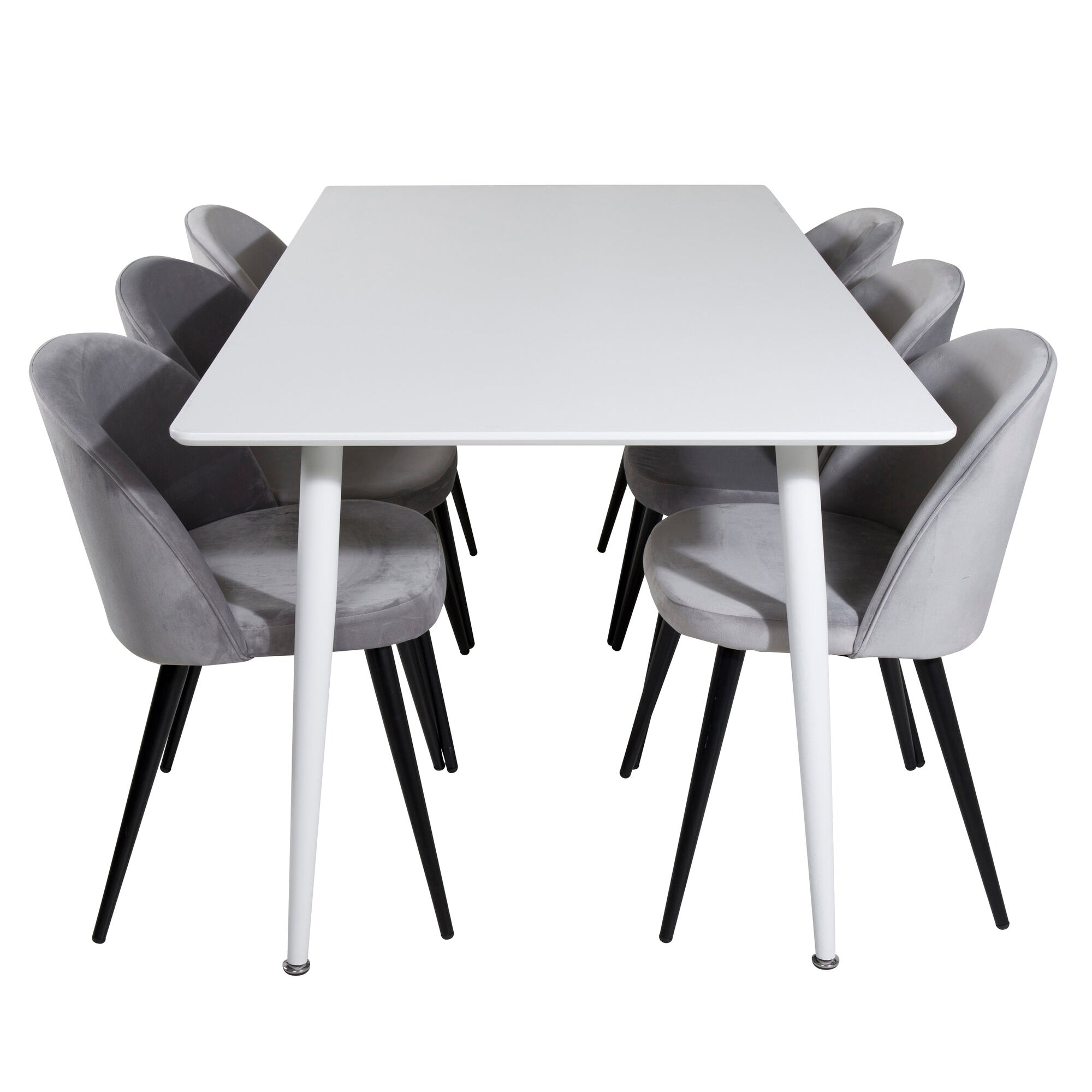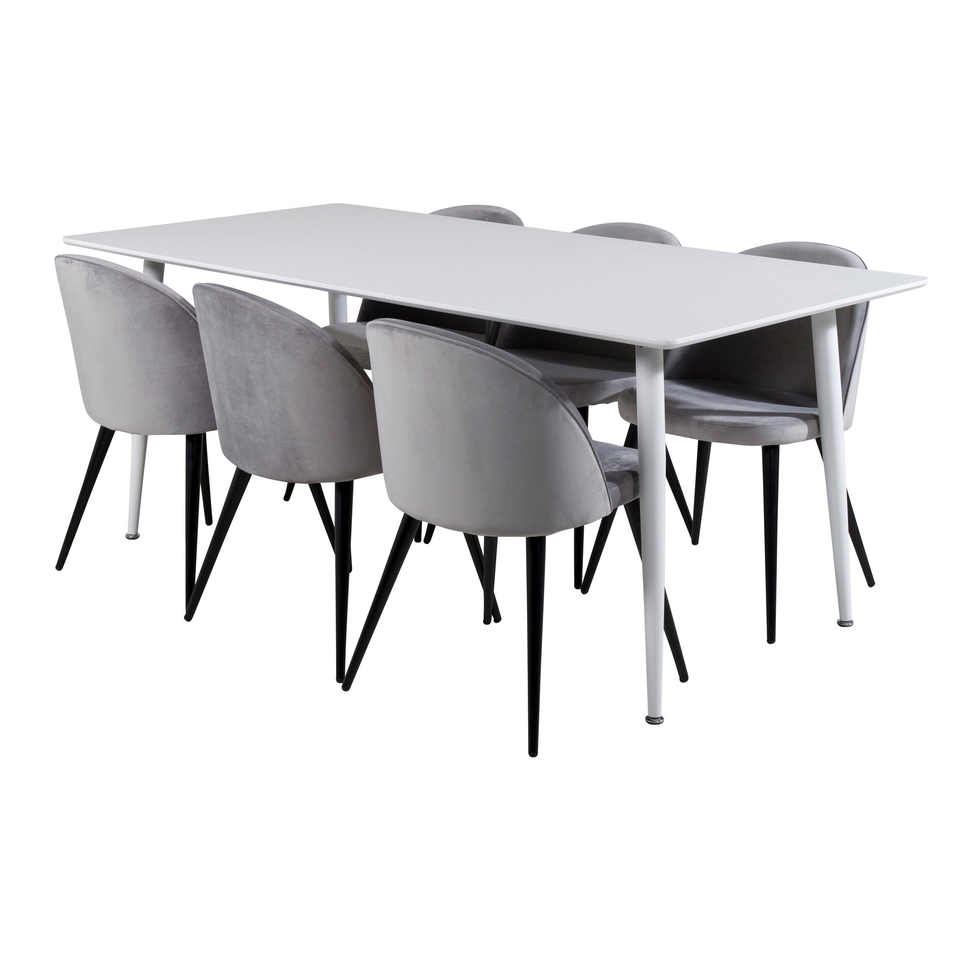 Jídelní stůl Polar 180 cm - Bílá deska / Bílé nohy + Sametová jídelní židle - Světle šedá / Černá_6