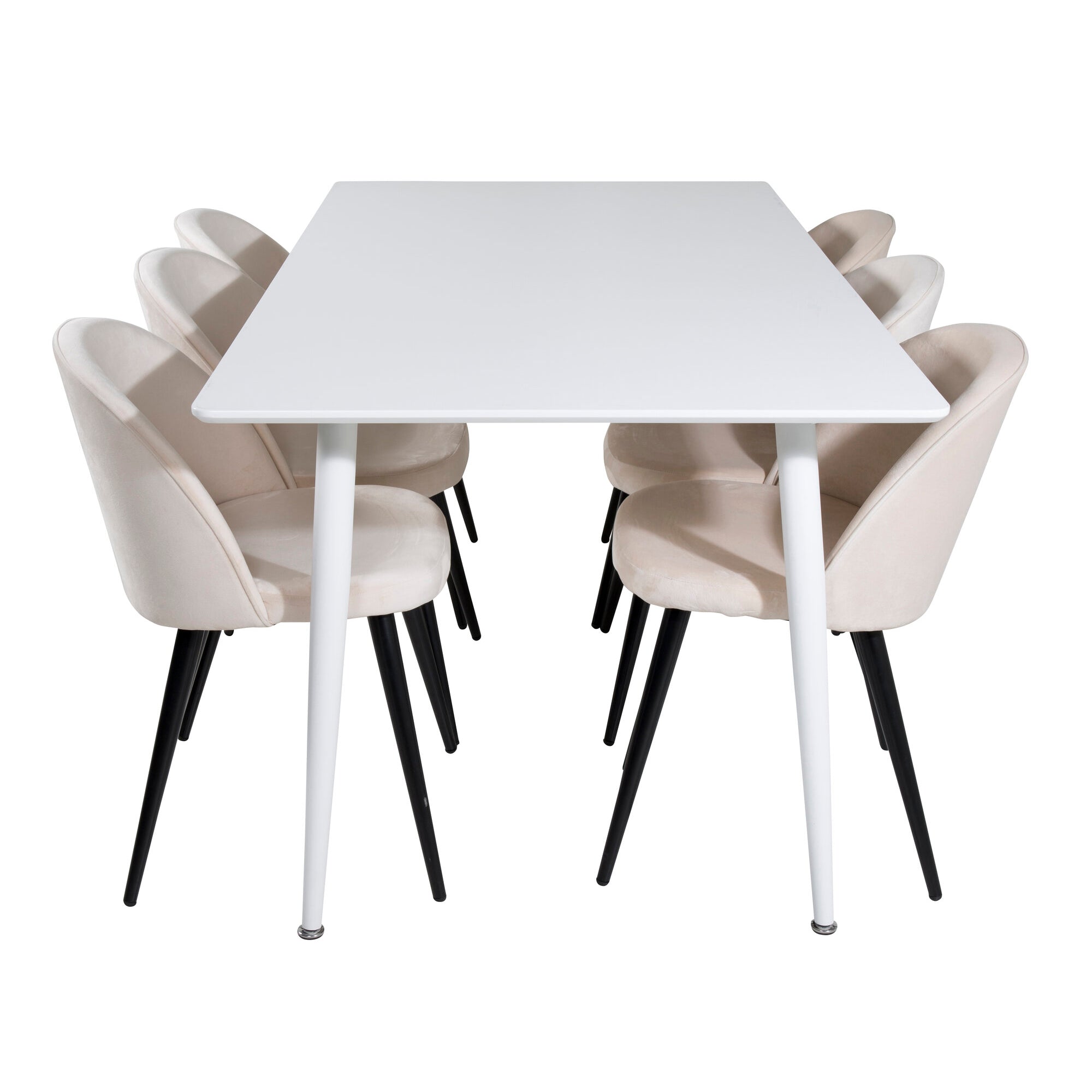 Polar Jídelní stůl 180 cm - Bílá deska / Bílé nohy + Sametová jídelní židle - Béžová / Černá_6