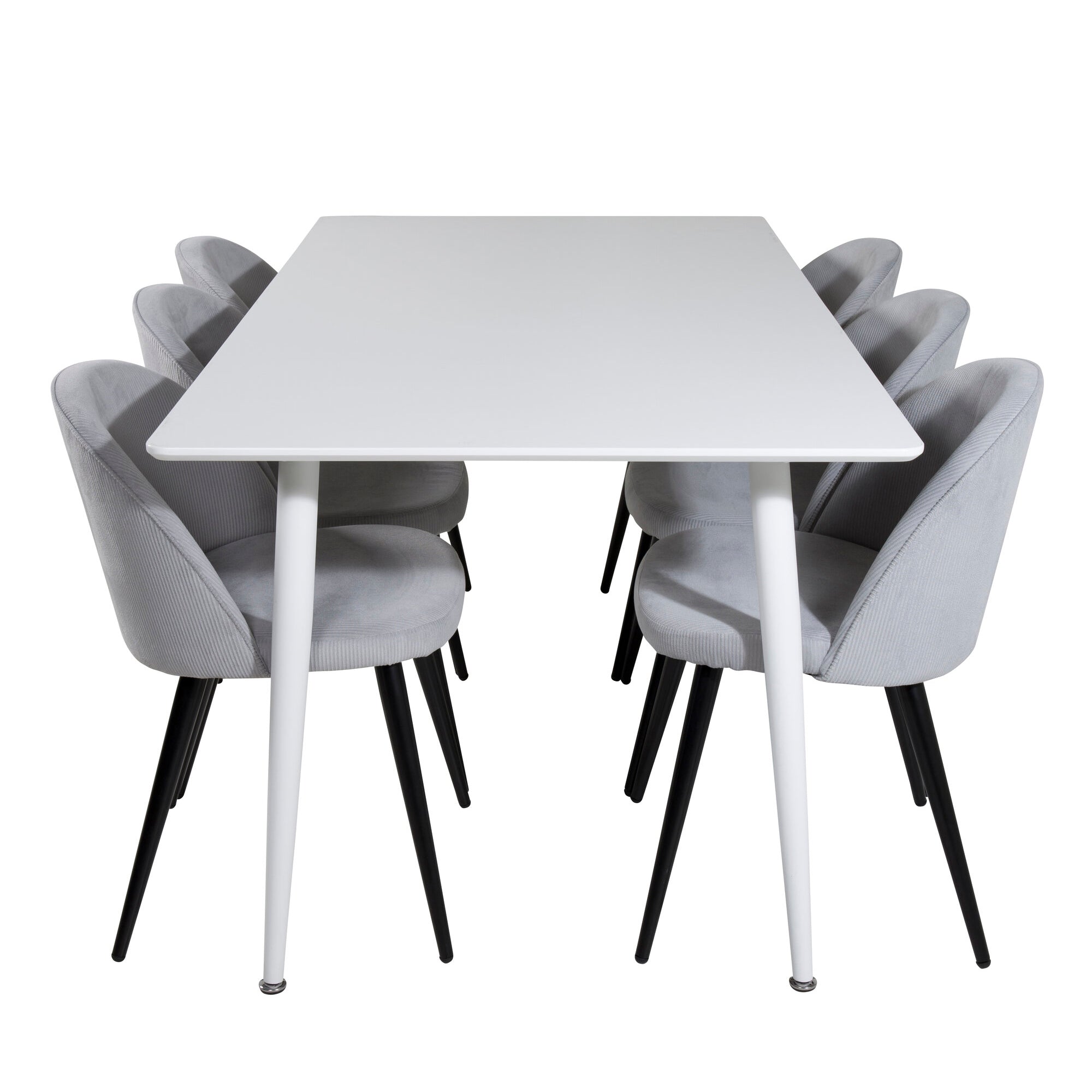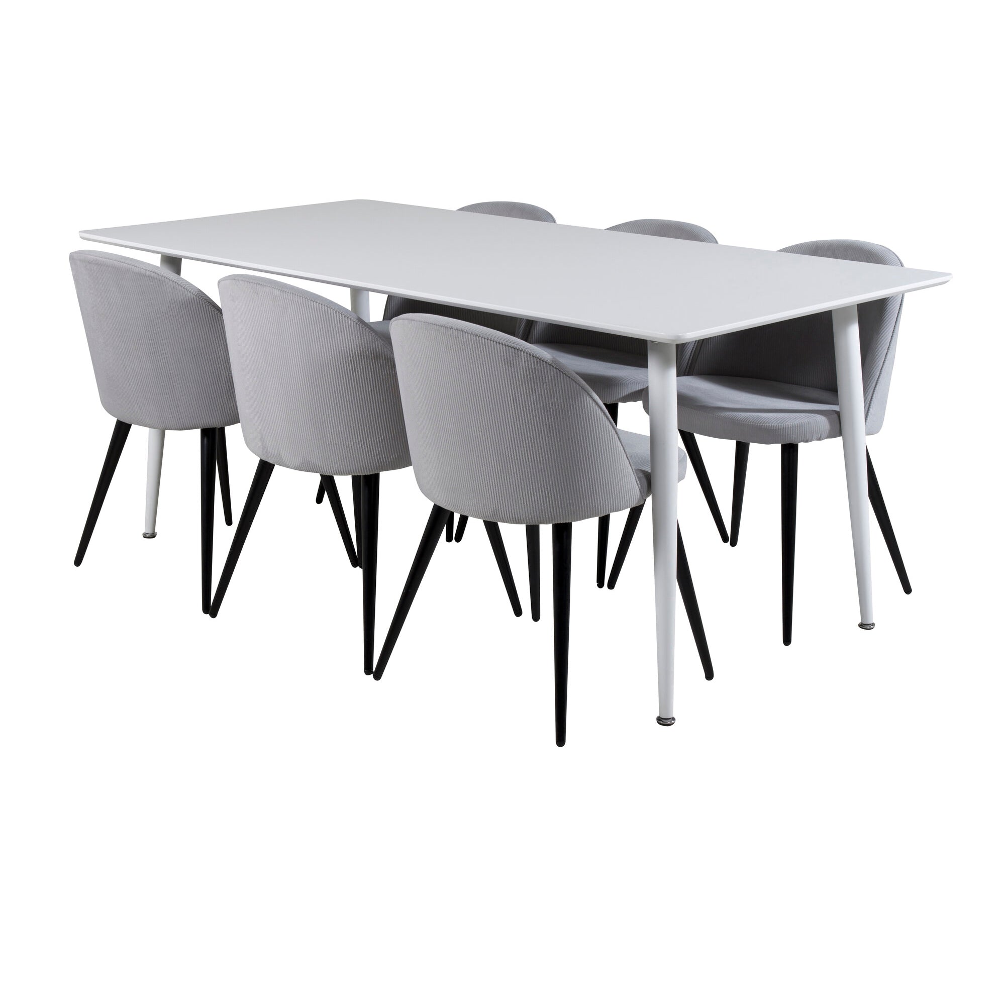 Polar Jídelní stůl 180 cm - Bílá deska / Bílé nohy + Sametová jídelní židle Manšestr - Světle Šedá / Černá_6