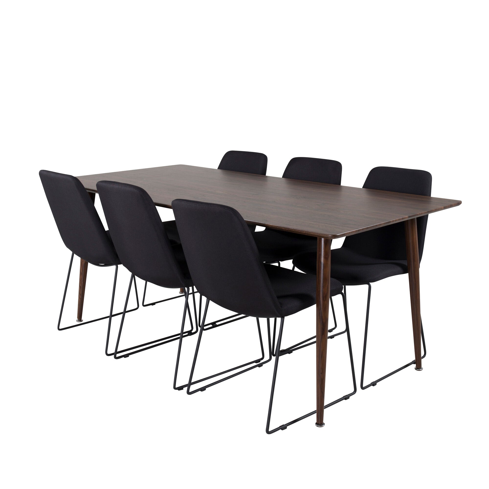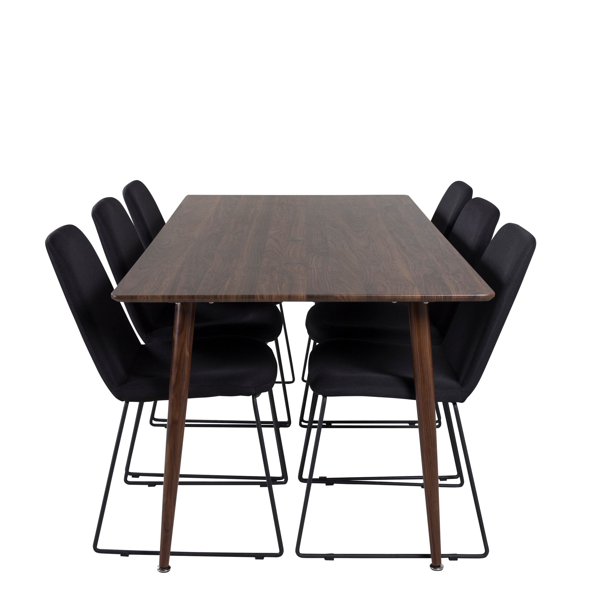 Jídelní stůl Polar 180 cm - Ořechová deska - Ořechové nohy+Muce Jídelní židle - Černé nohy - Černá Fabric_6