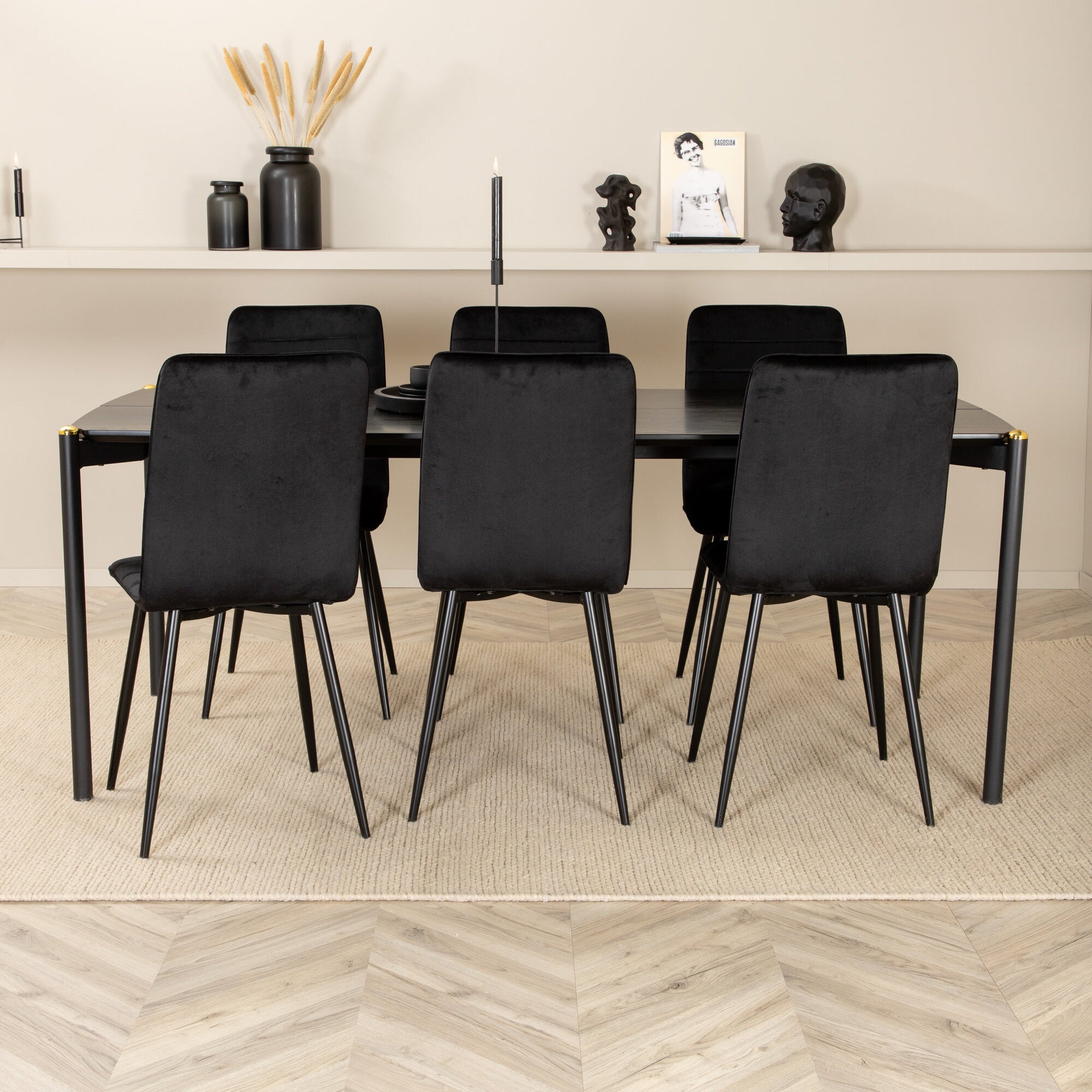 Jídelní stůl Astrid 200*75 - Matná černá / Matná černá MDF s dýhou + Noční jídelní židle - Černá / Black Velvet _6