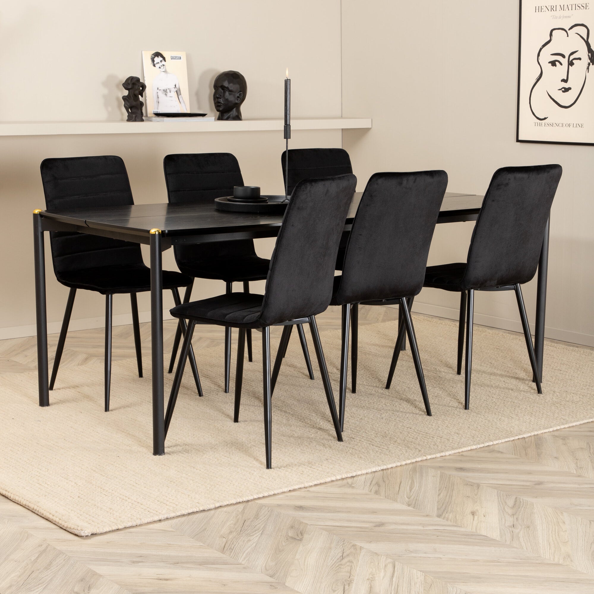 Jídelní stůl Silar - 180 cm - černý melamin / černé nohy + sametová jídelní židle mosaz - světle šedá / černá_6