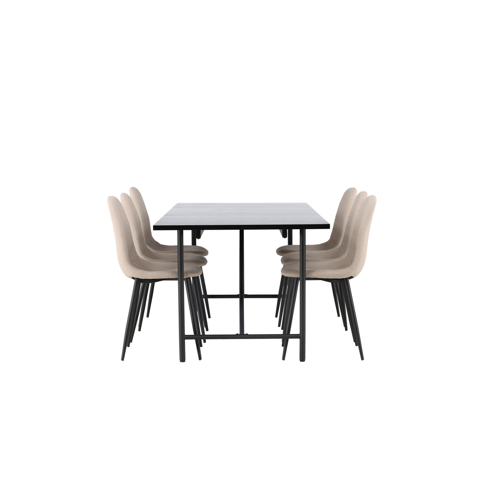 Jídelní stůl Dipp - 180*90cm - Černá dýha / celé černé nohy + Jídelní židle Polar - Ořechové nohy - Černá látka_6