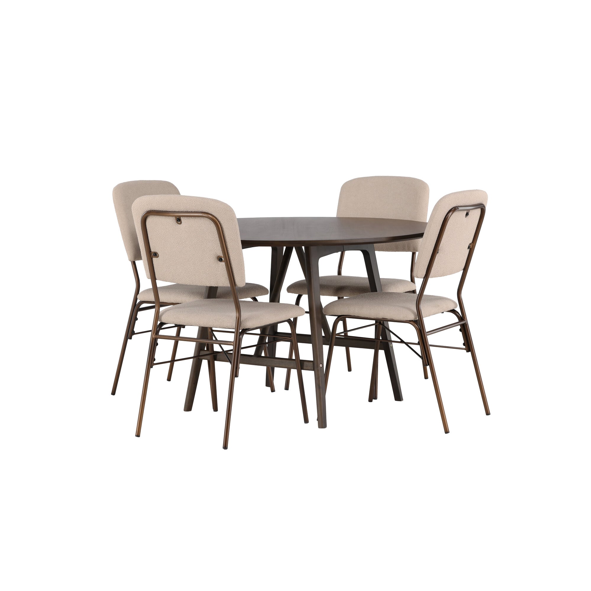 Jídelní stůl Kaseidon - kulatý - kaučukové dřevo / tmavě hnědá MDF + Jídelní židle Seda - matná hnědá / béžová látka _4