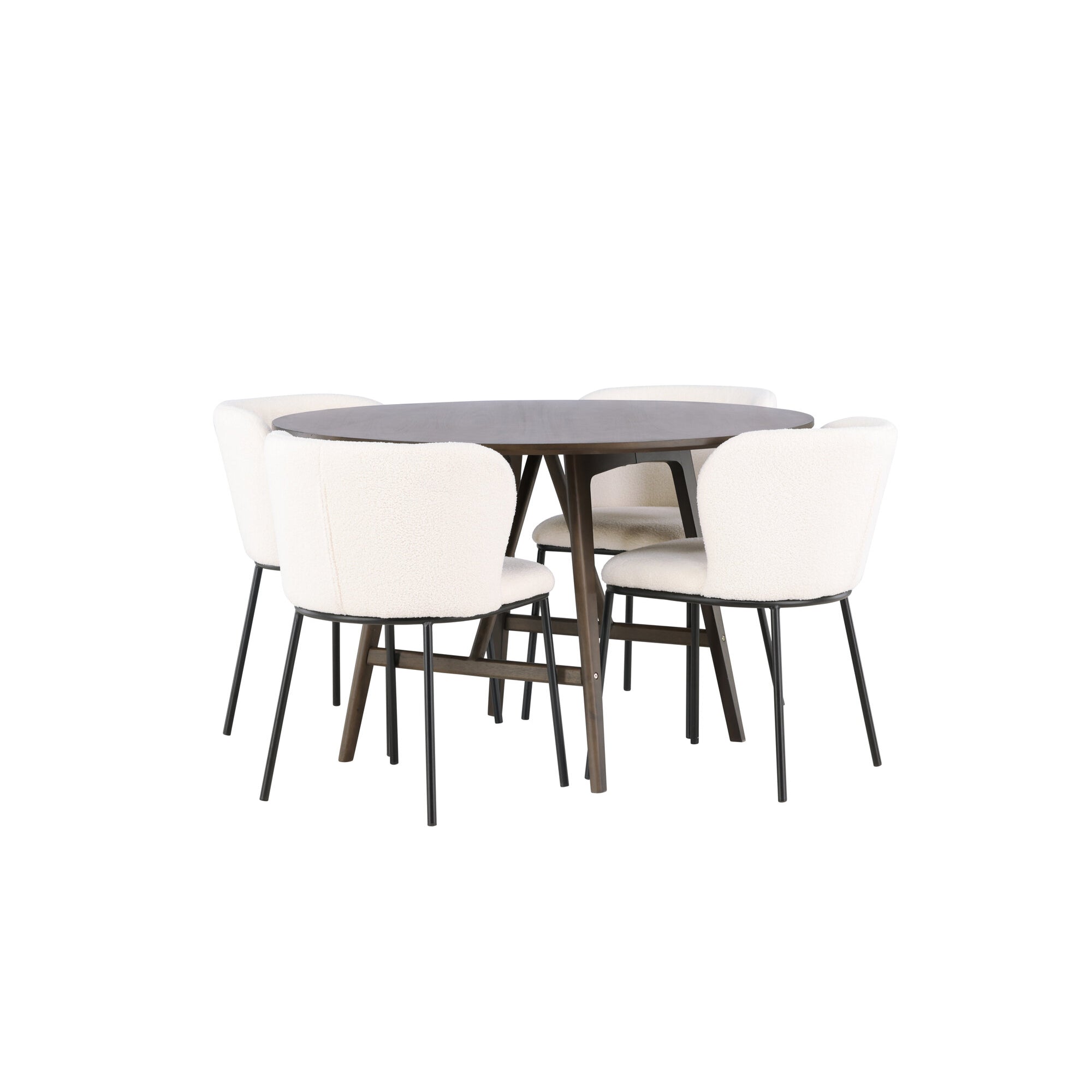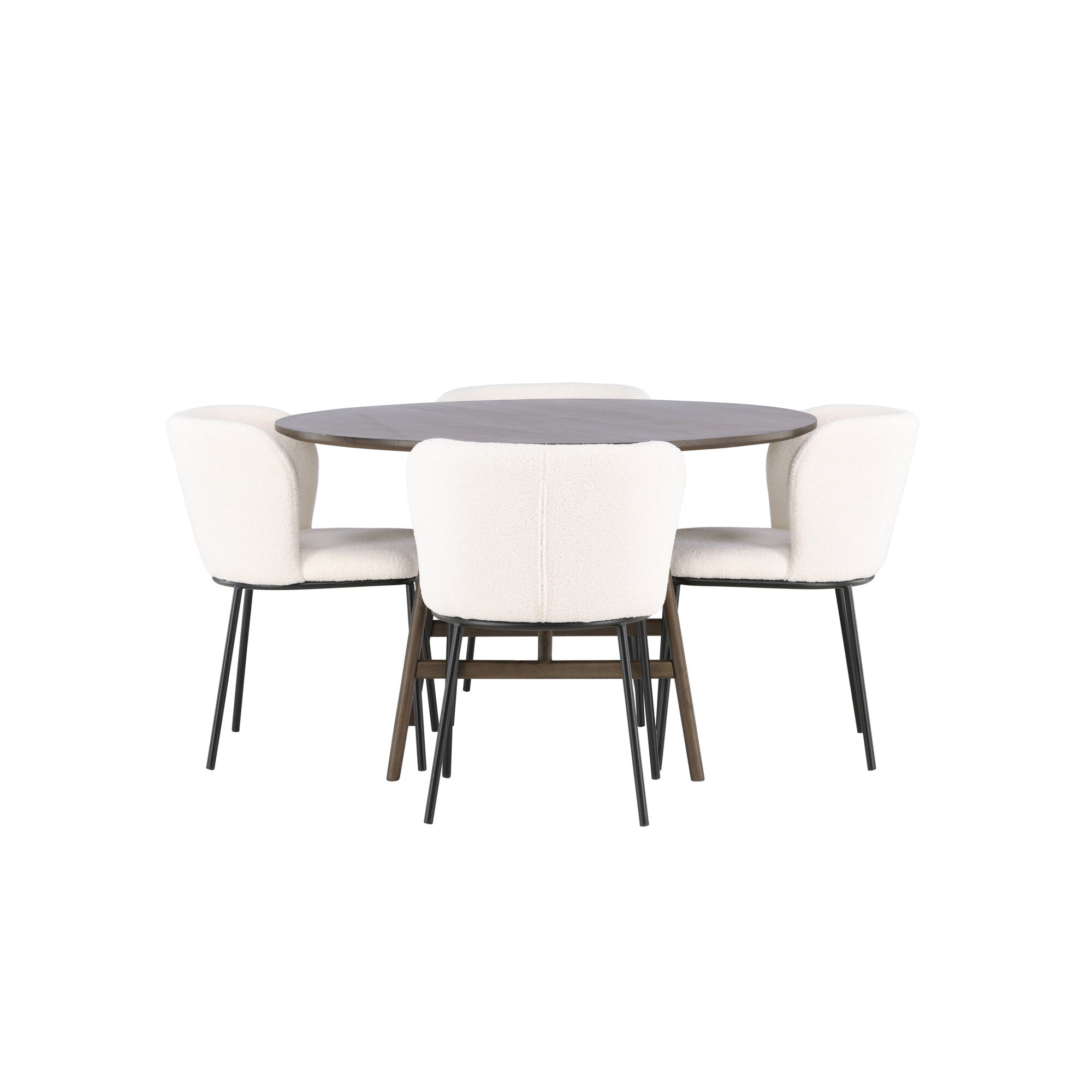Jídelní stůl Kaseidon - kulatý - kaučukové dřevo / tmavě hnědá MDF + jídelní židle Edina - černá / bílá Boucle _4