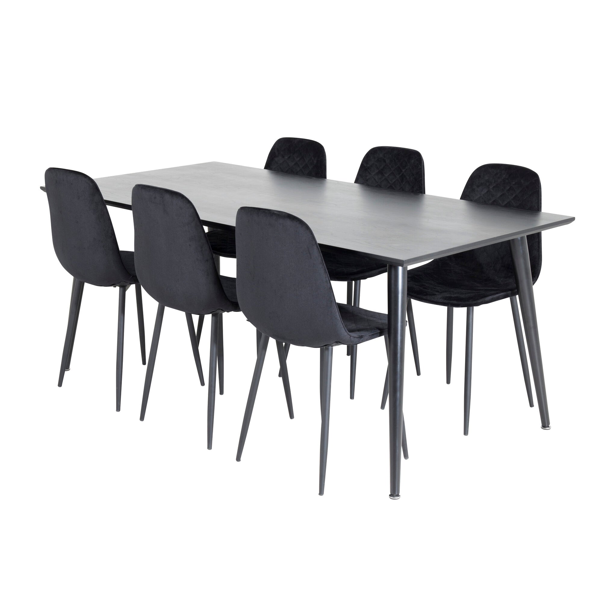 Jídelní stůl Dipp - 180*90cm - Černá dýha / celé černé nohy - Jídelní židle Polar Diamond - Černé nohy - Grey Velvet 6