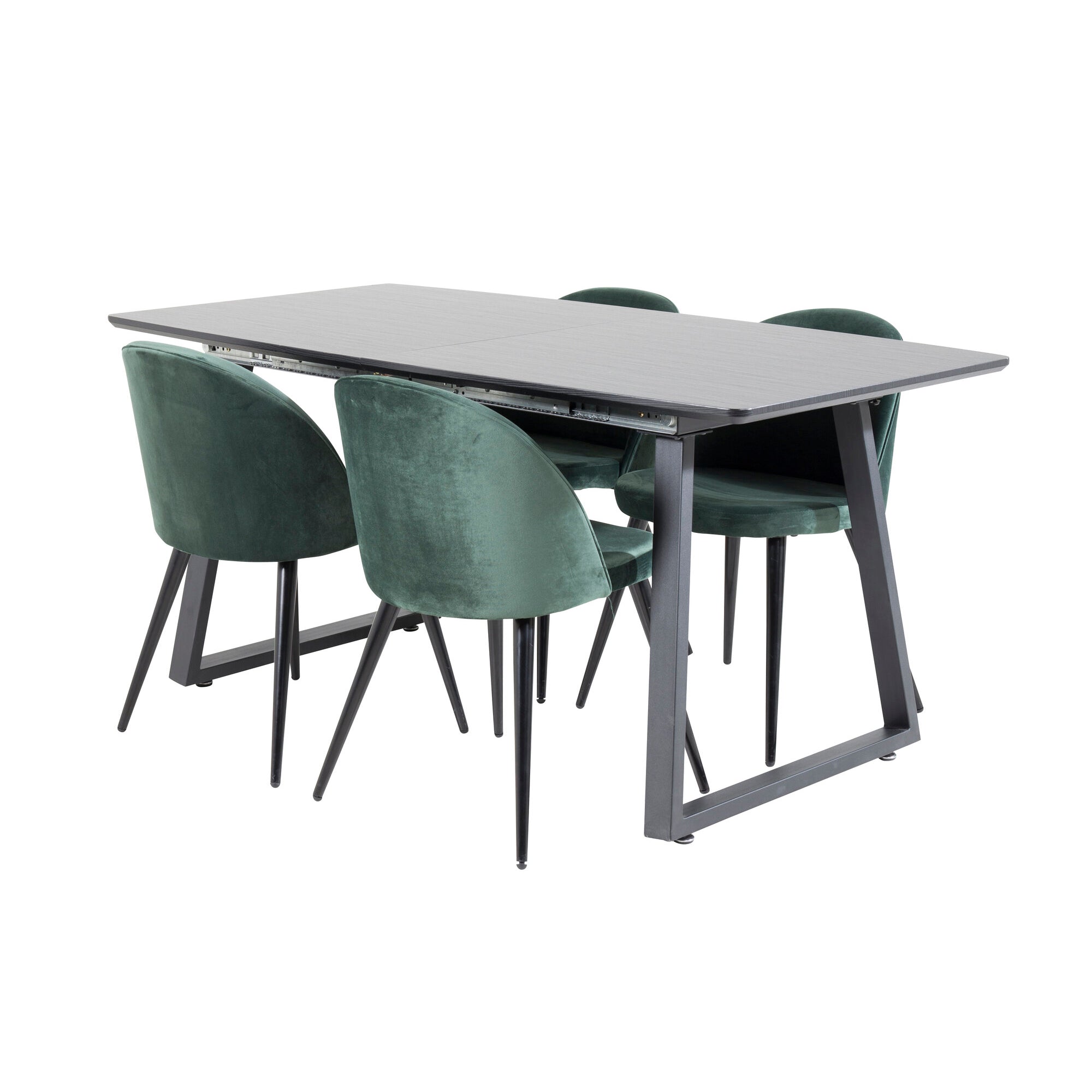 Inca Extentiontable - Černá deska / černá Nohy+Velvet Jídelní židle - Zelená / Černá_4