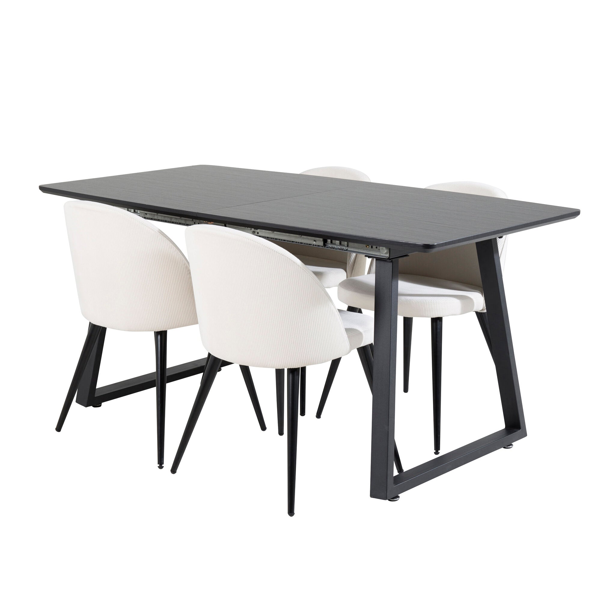 Rozšiřitelný Inca - černý top / černé nohy + sametová jídelní židle manšestr - béžová / černá_4