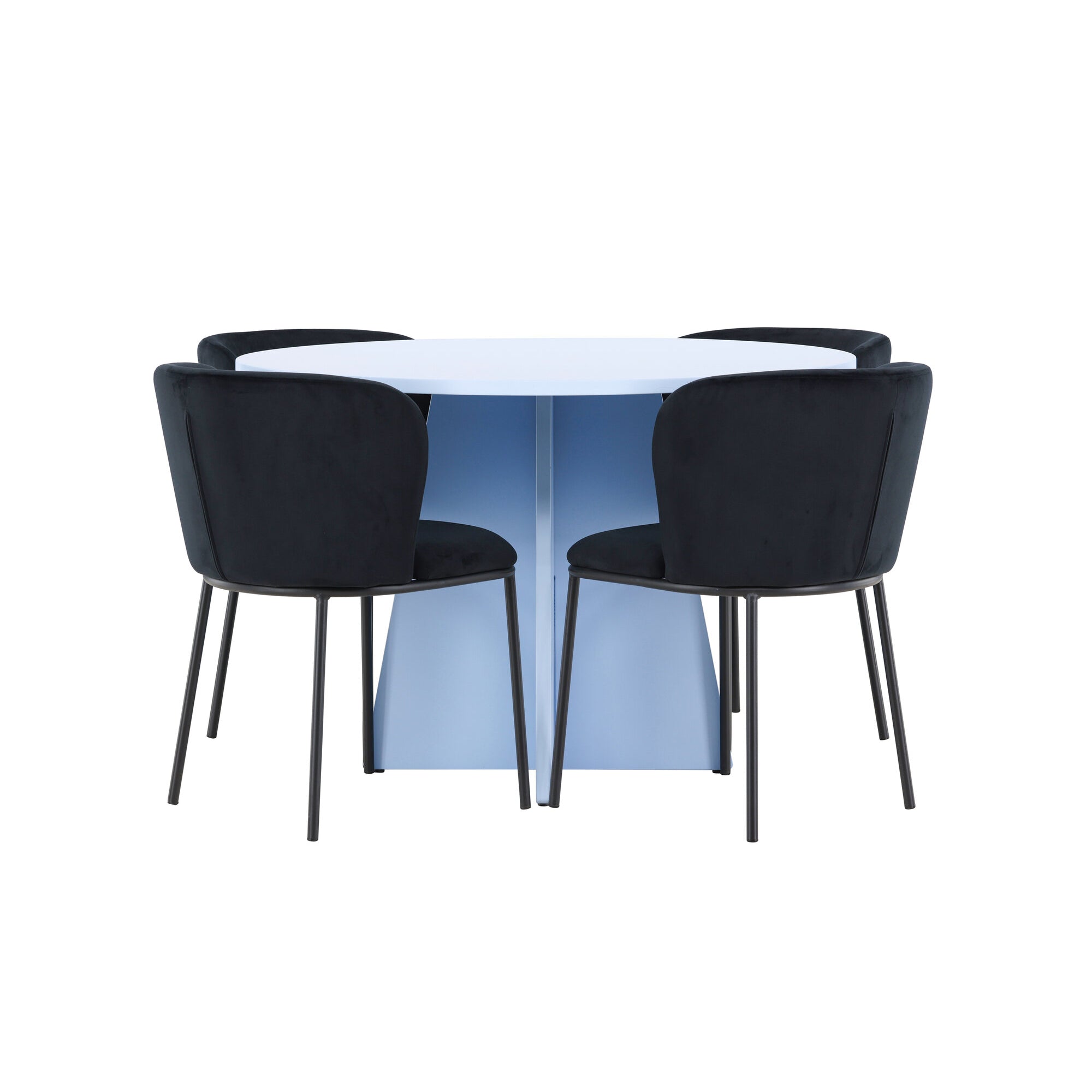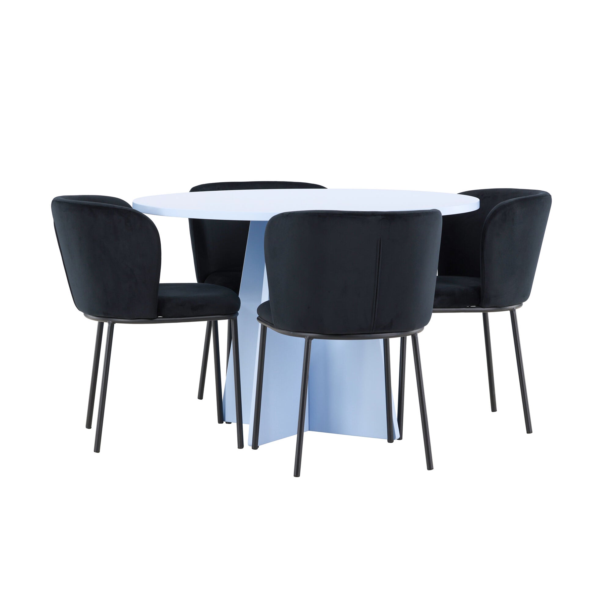 Stůl Bootcut - Baby Blue se 4 židlemi Edina - Black