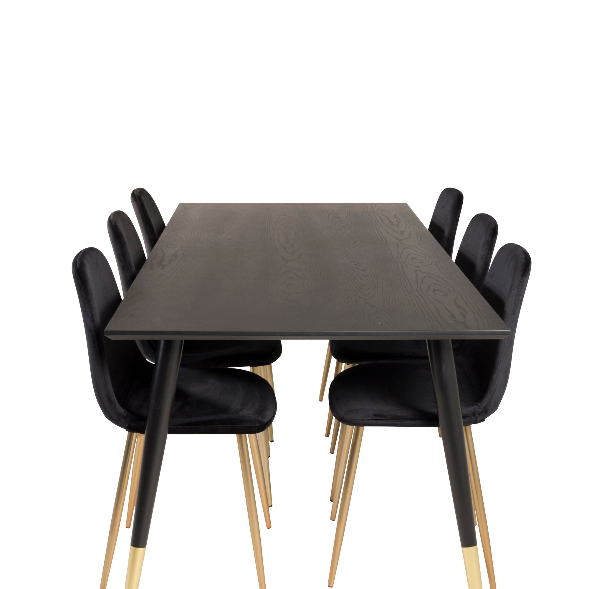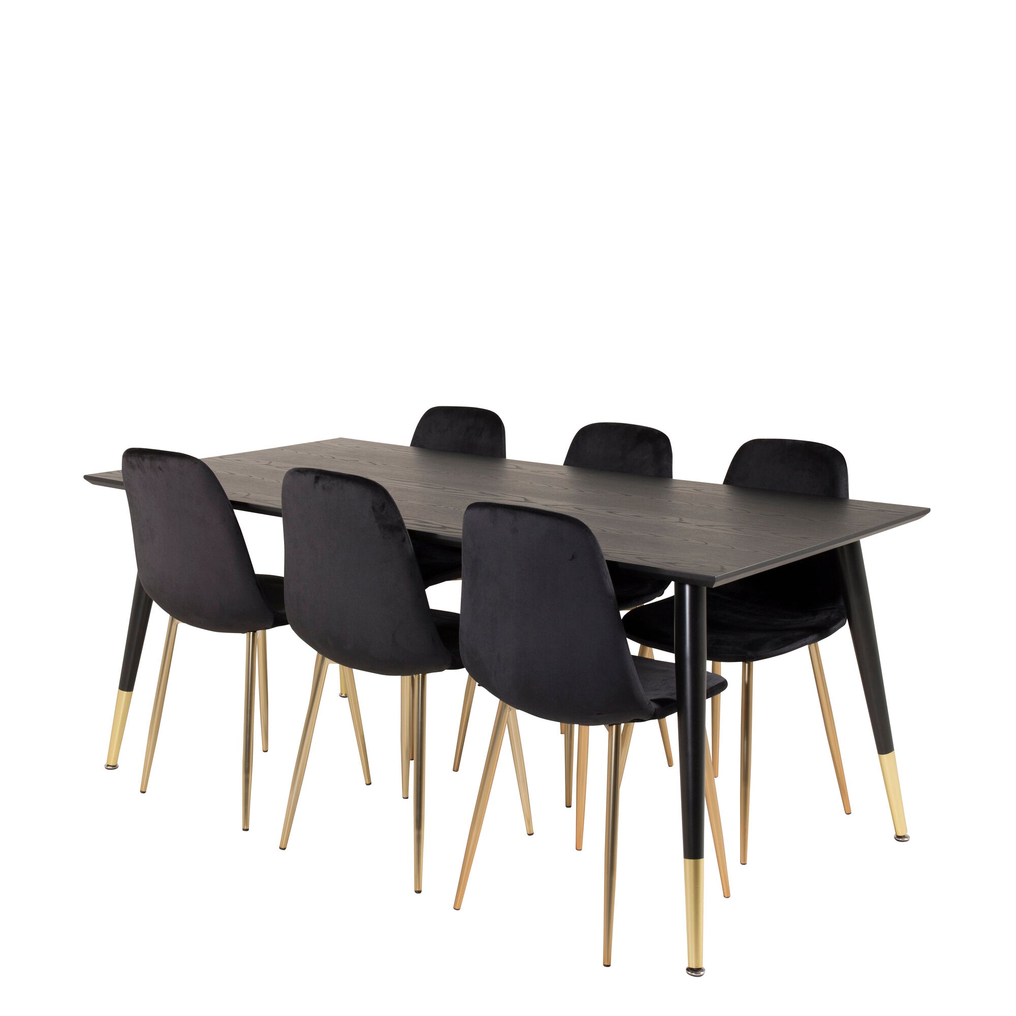 Dipp jídelní stůl - 180*90cm - Černá dýha / černé nohy s mosazným dippem + Polar Matstol - Matt Mässing / Svart Sammet_6