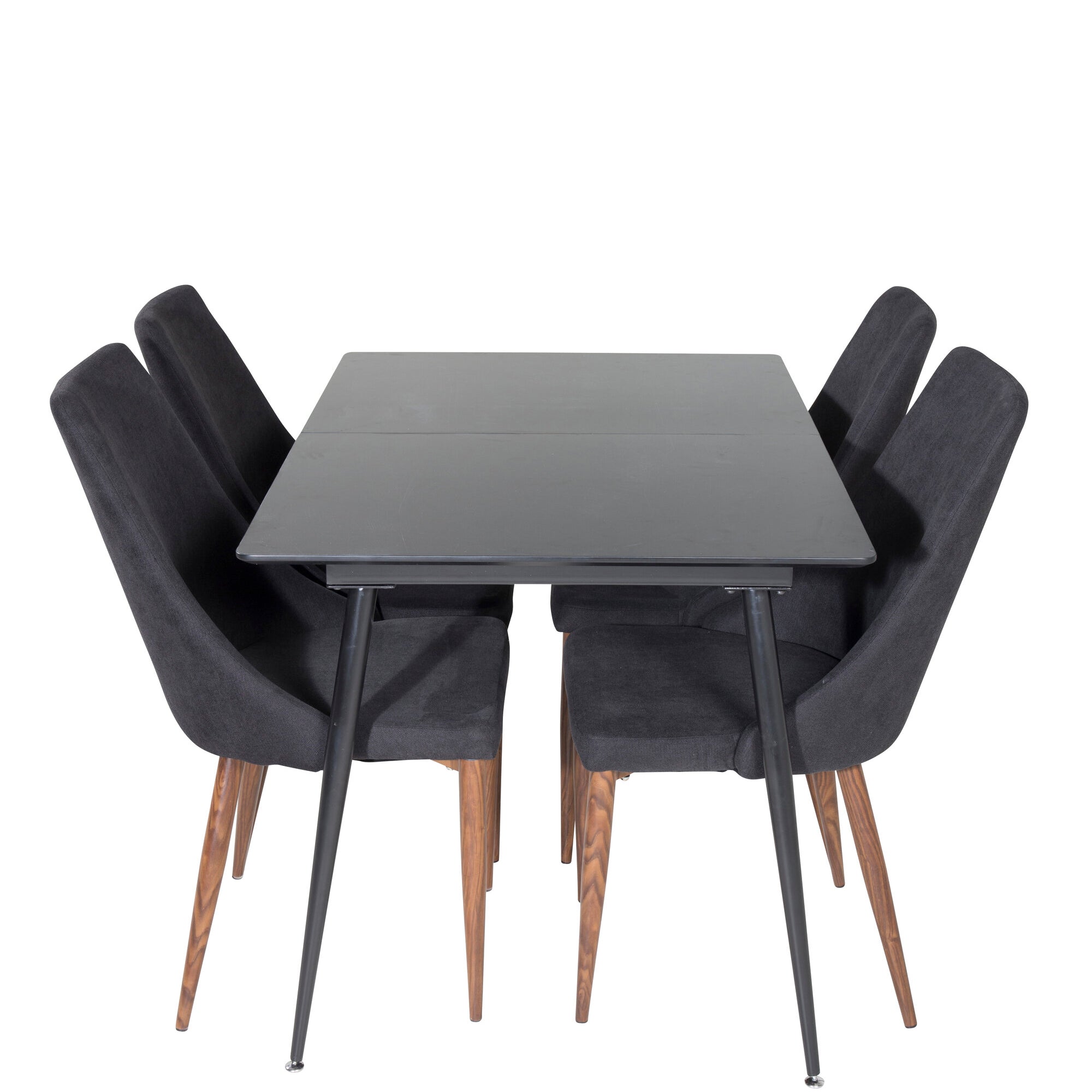 Prodlužovací stůl Silar - černý melamin / černé nohy+jídelní židle Leone - nohy z ořechového dřeva - černá látka_4