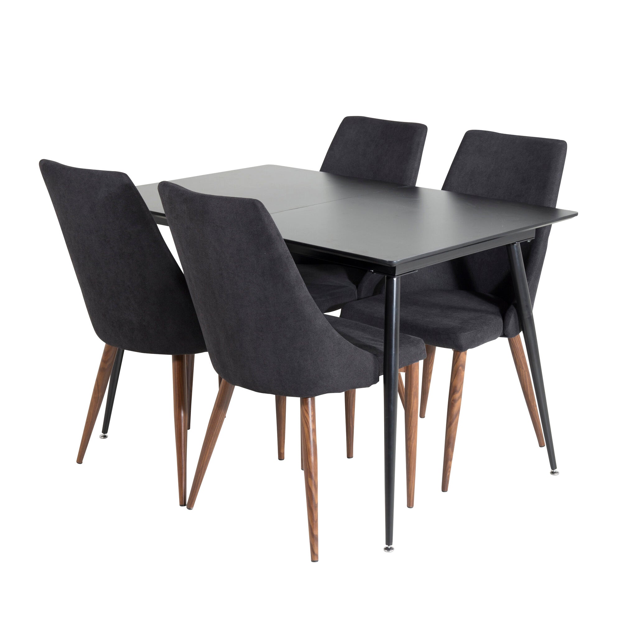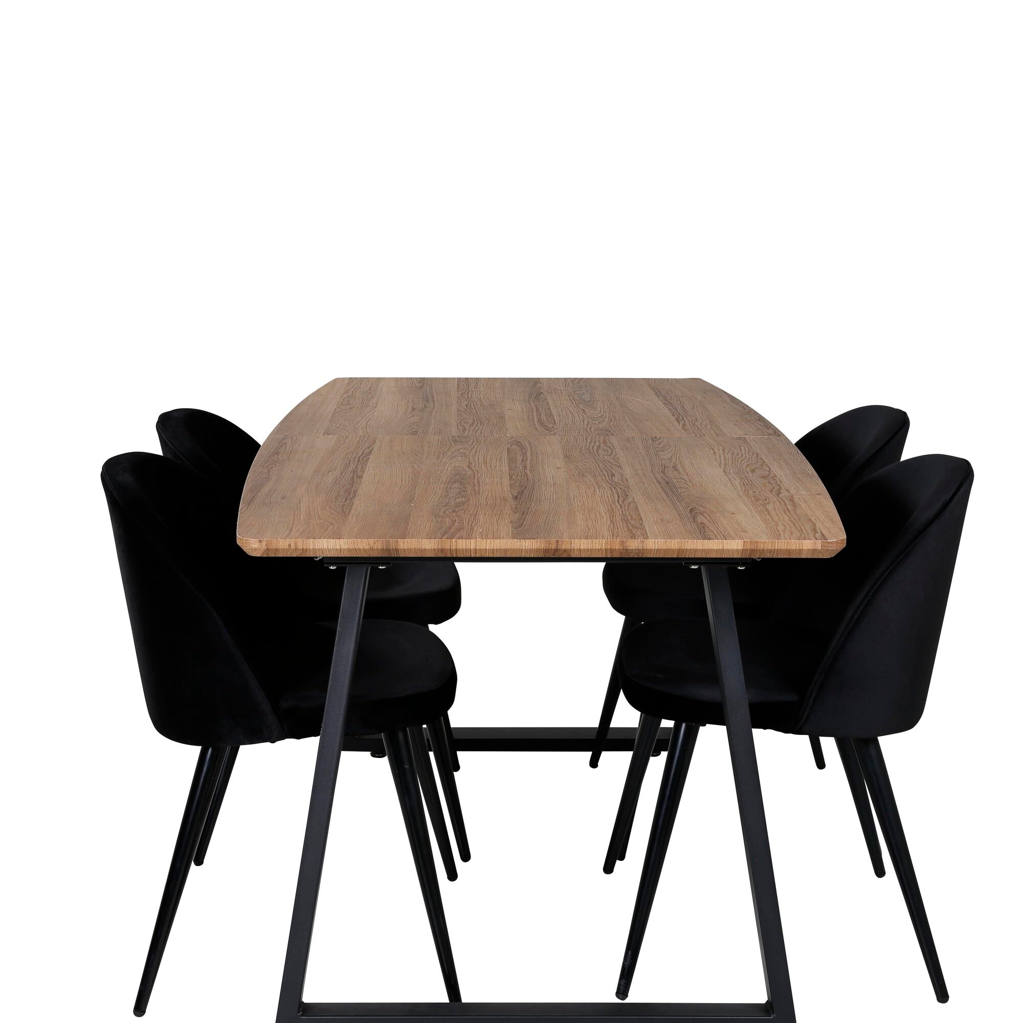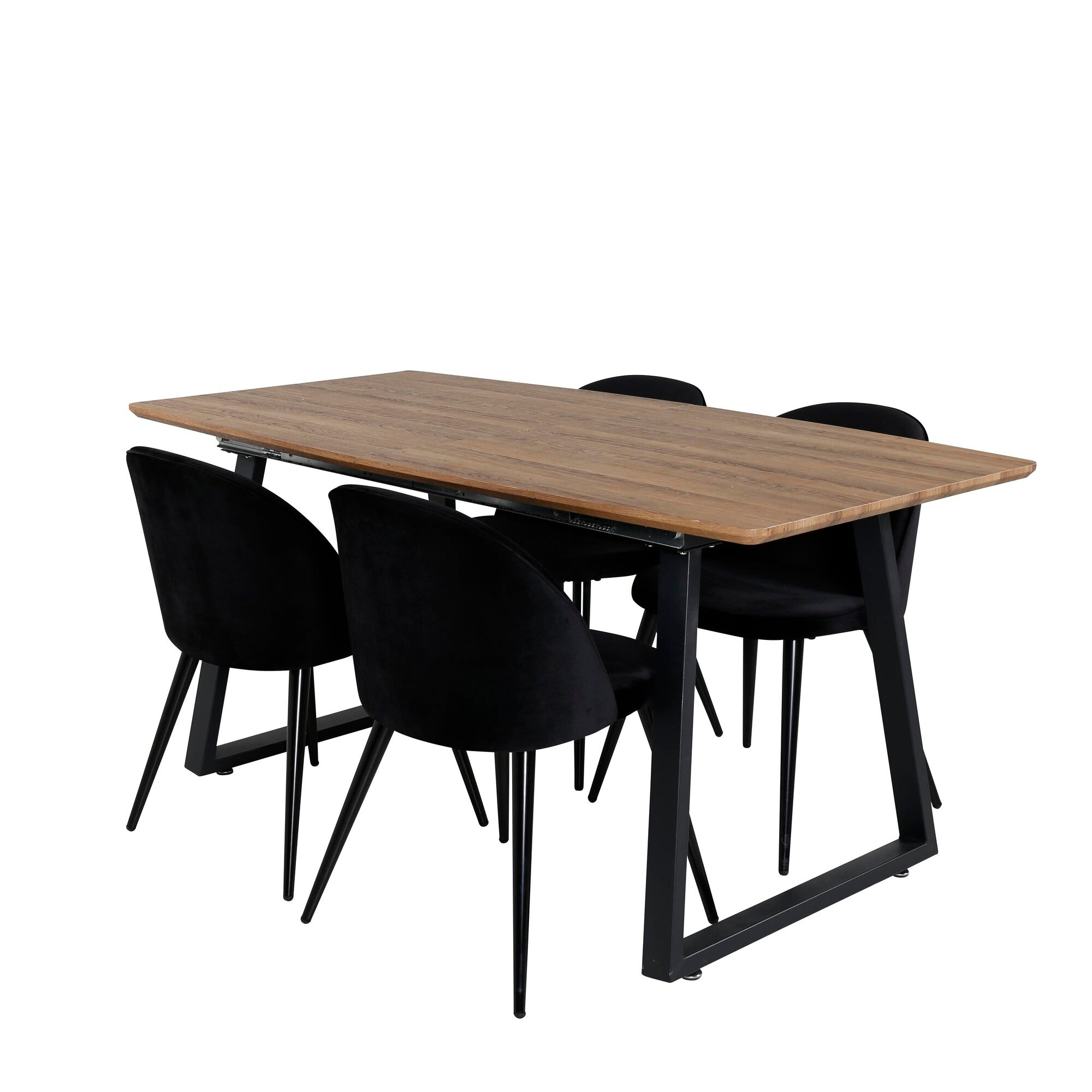 Jídelní stůl Inca - 160/200*85*H75 - Dub / Černá + Sametová jídelní židle - Černá / Černá_4
