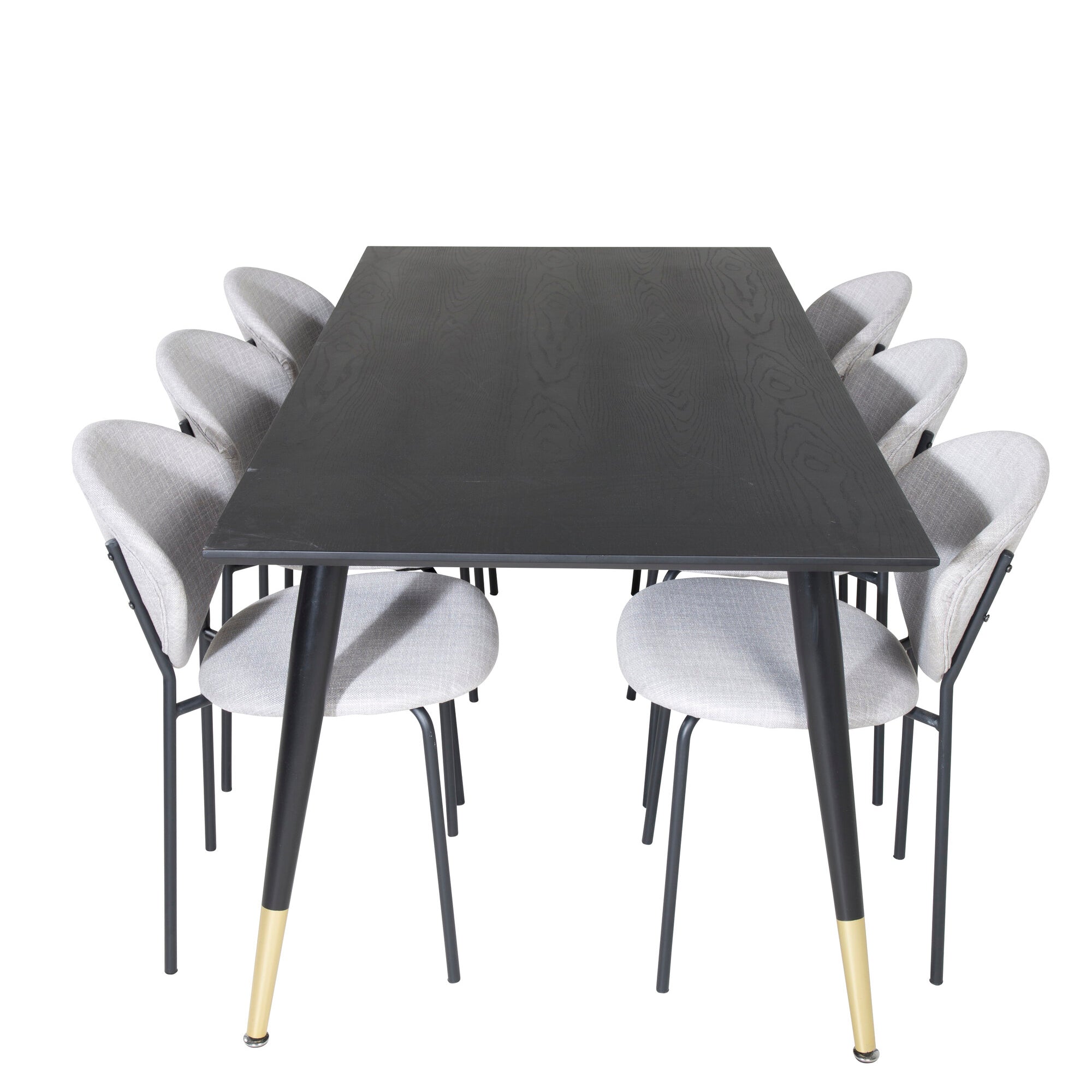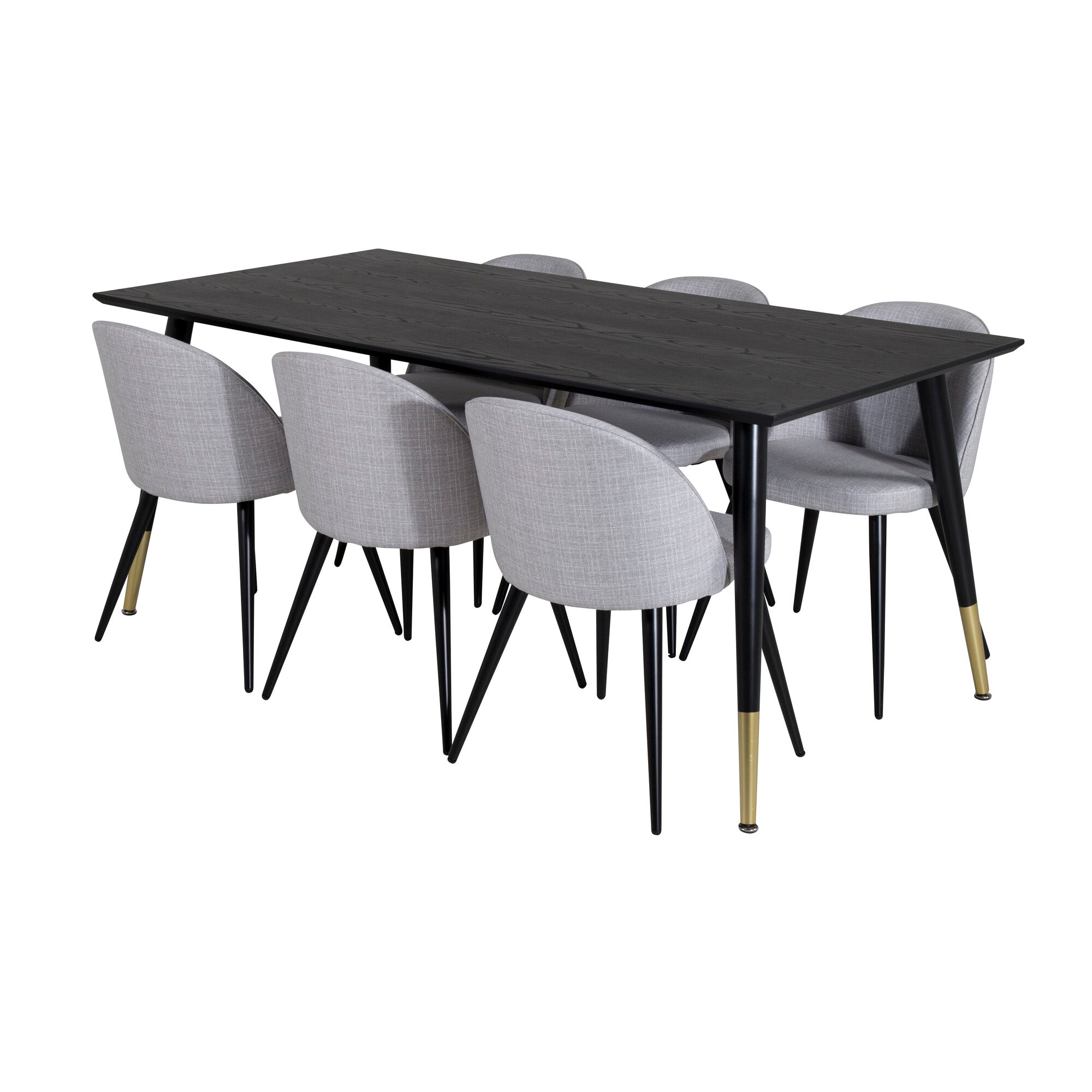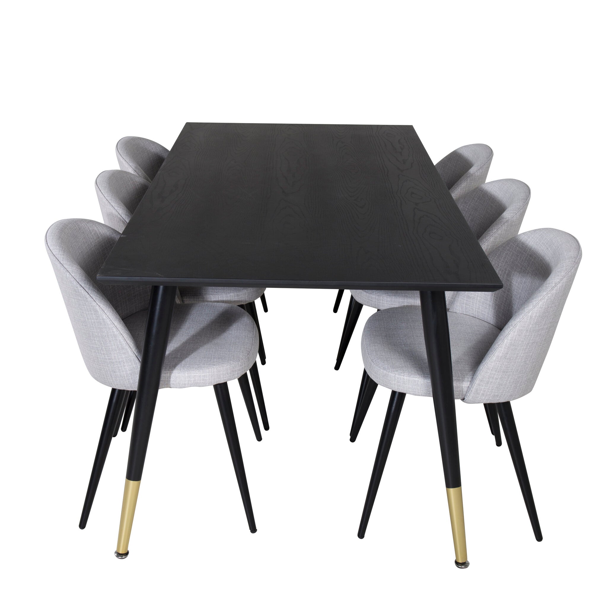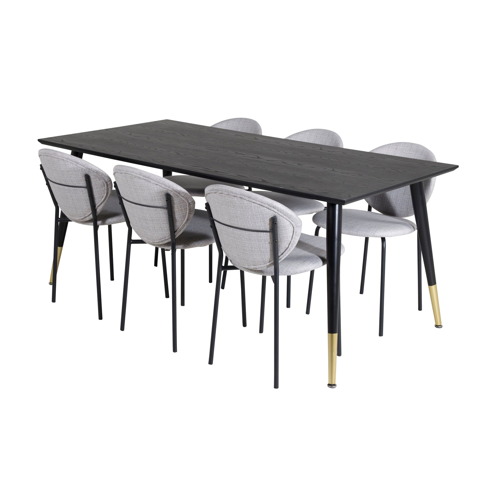 Jídelní stůl Dipp - 180*90cm - Černá / Černá mosaz + Jídelní židle Vault - Černé nohy - Šedá látka_6