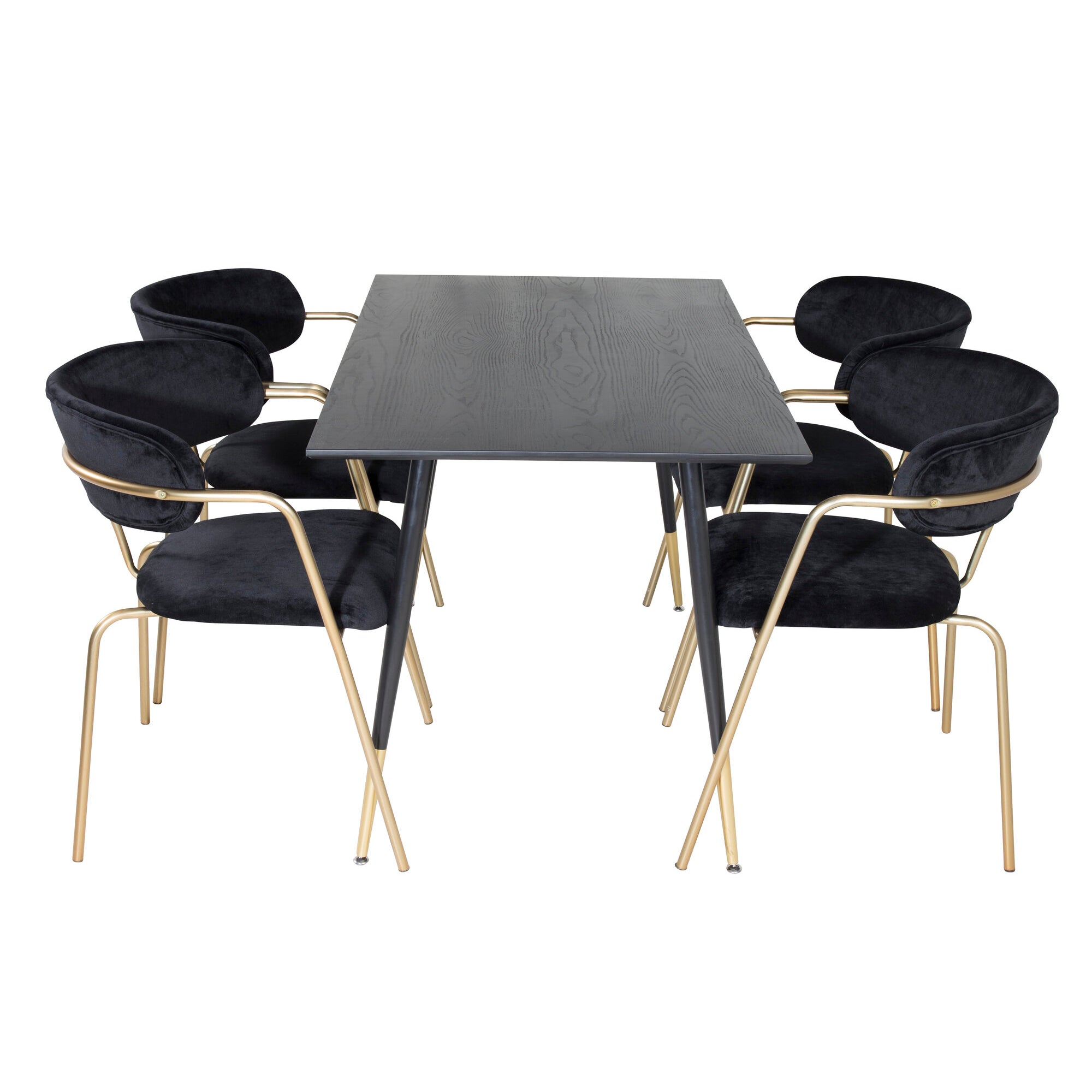 Jídelní stůl Dipp - 120 cm - Černá dýha - Černé nohy š. Mosazné křeslo dipp+Arrow - Mosazné nohy - Black Velvet_4