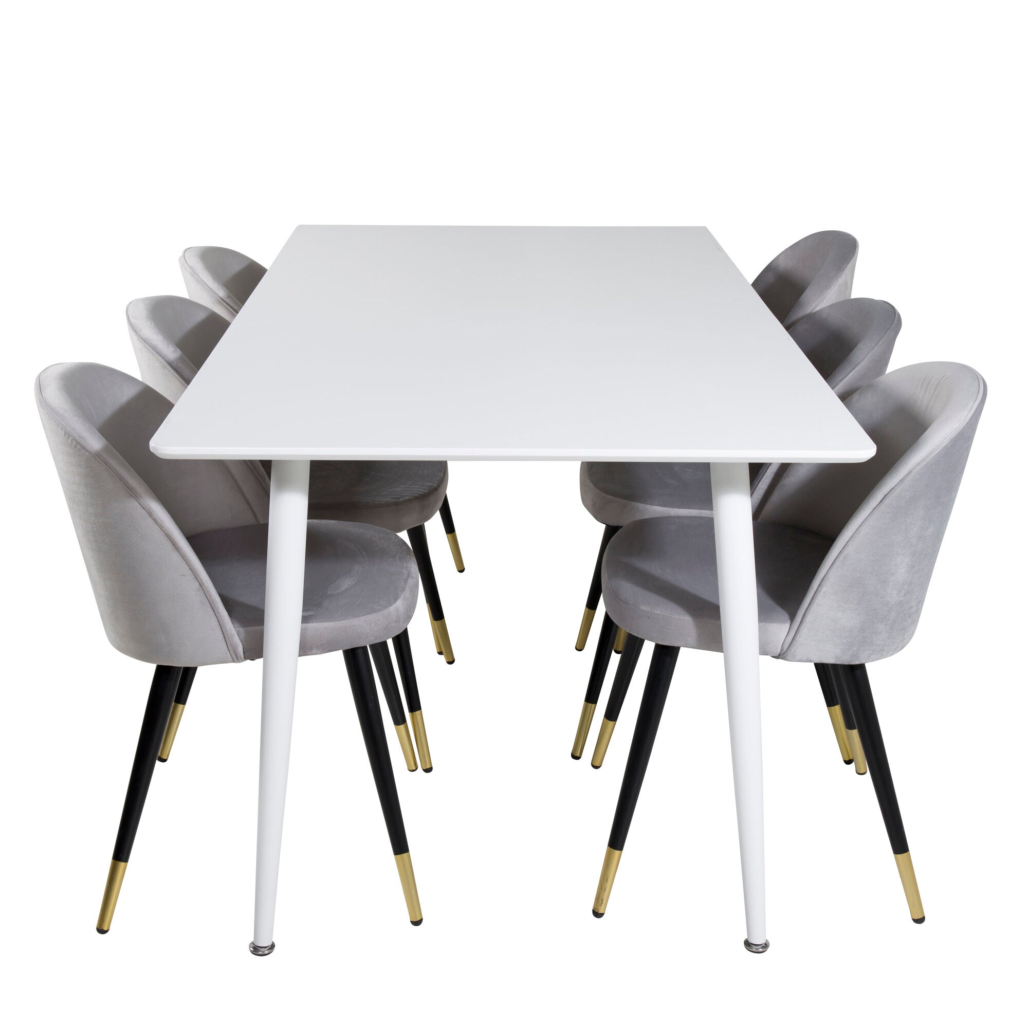 Polar Jídelní stůl 180 cm - Bílá deska / Bílé nohy + Sametová jídelní židle Mosaz - Světle šedá / Black_6