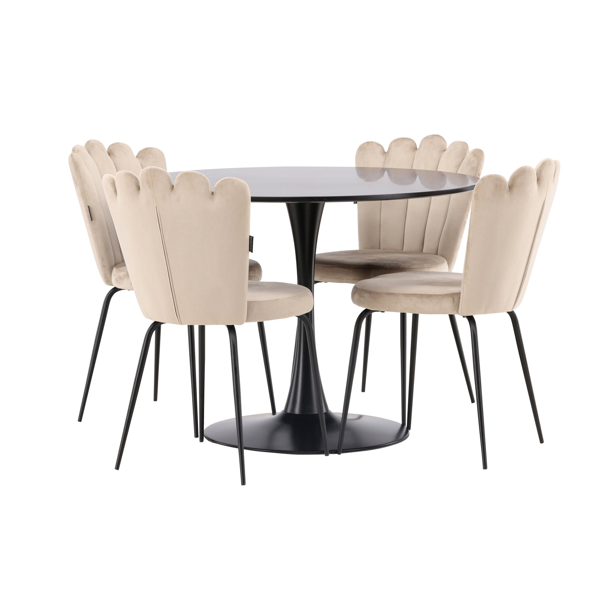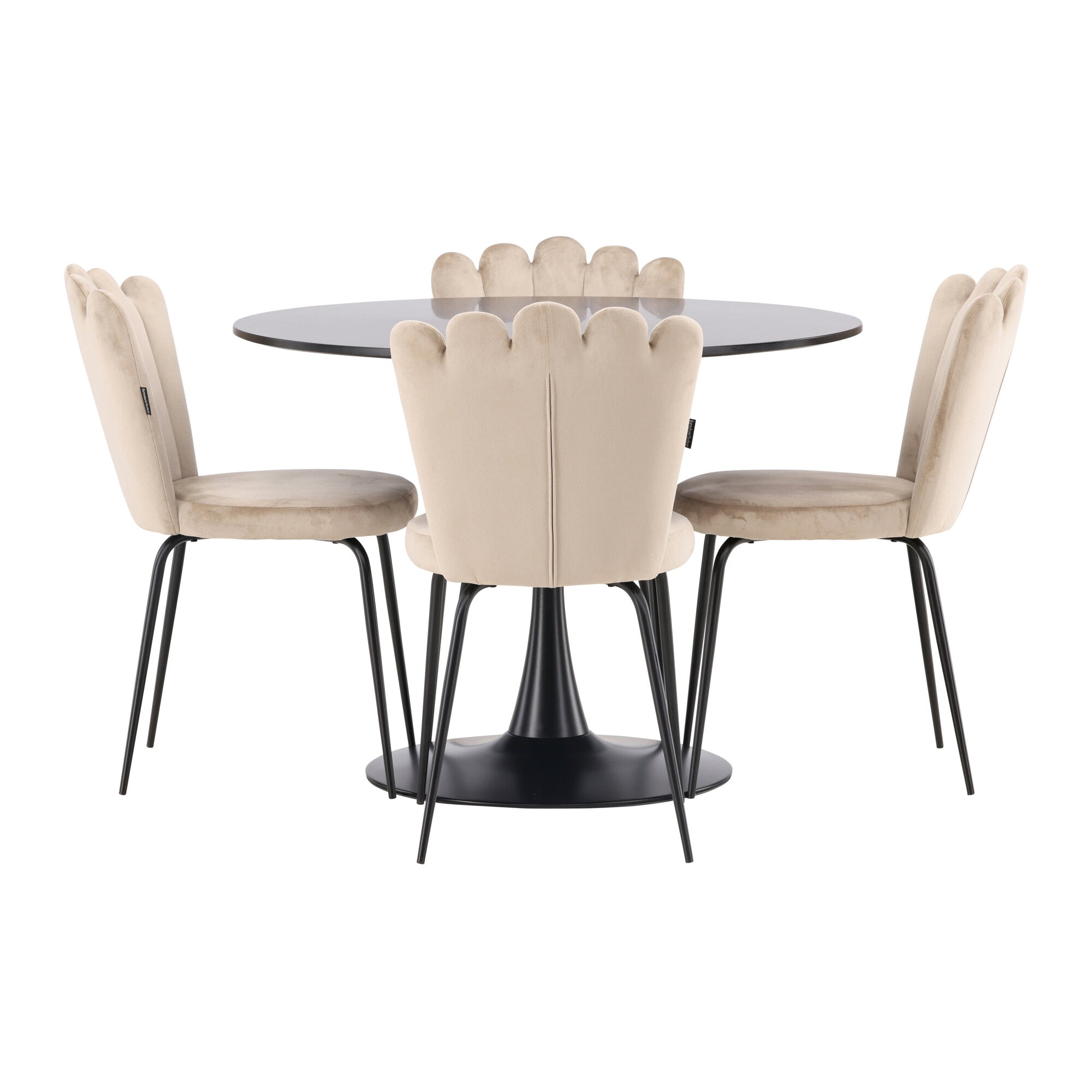 Jídelní stůl Glade – černá / černá MDF + židle Limhamn Light – černá / béžová Velvet _4