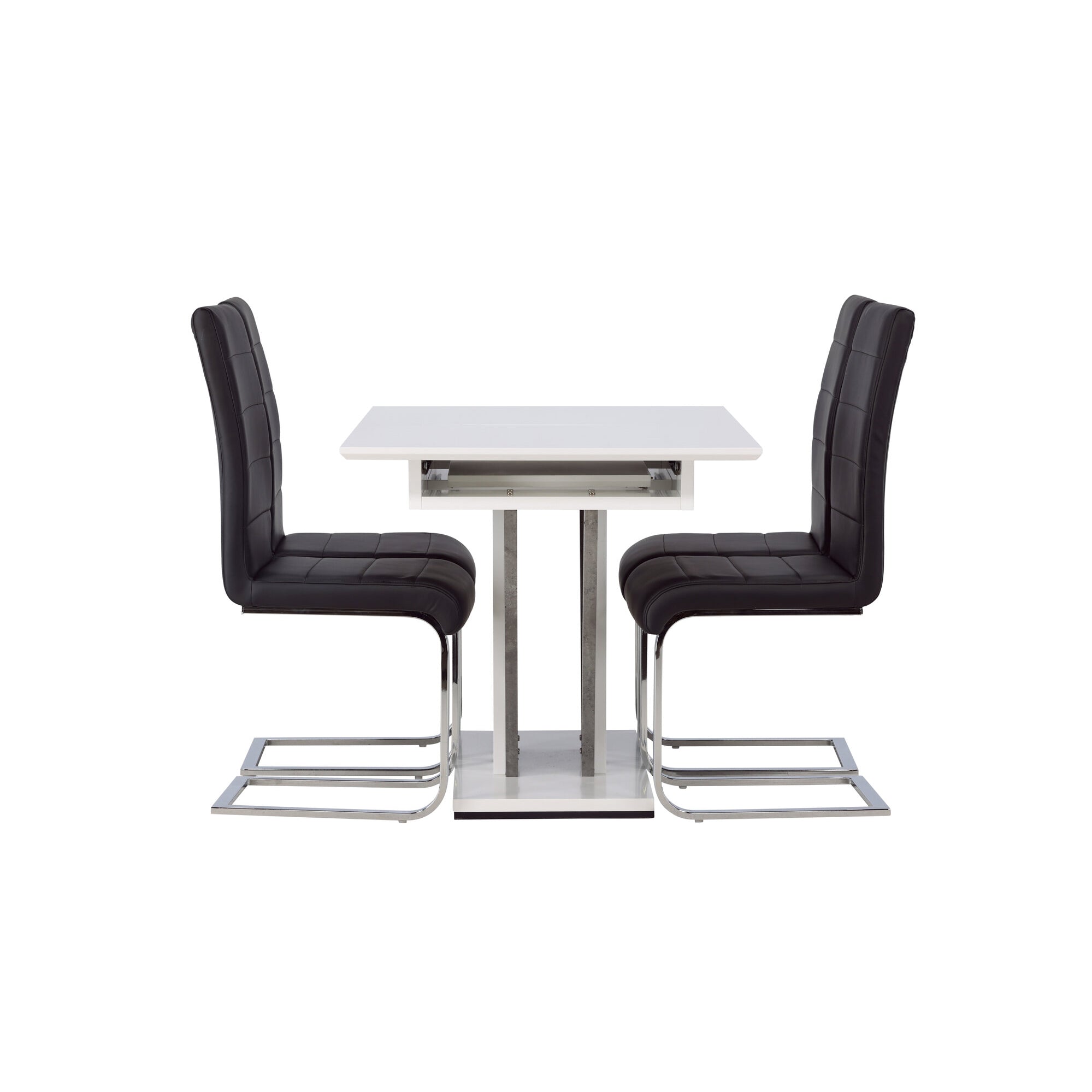 Jídelní stůl Disa 120/160*80 - Bílá / Šedá MDF + Jídelní židle Tempo - Pochromovaná noha / Černá PU _4