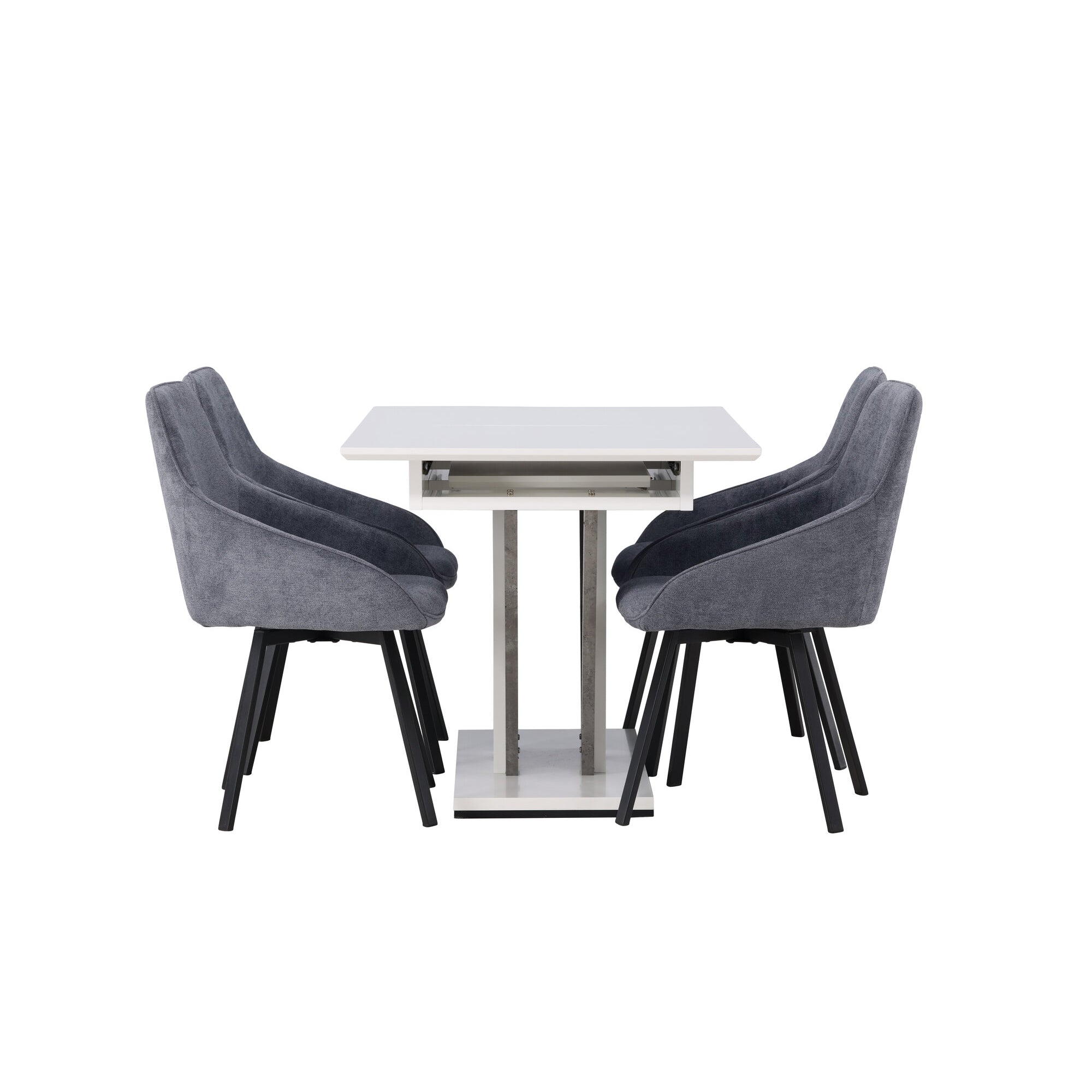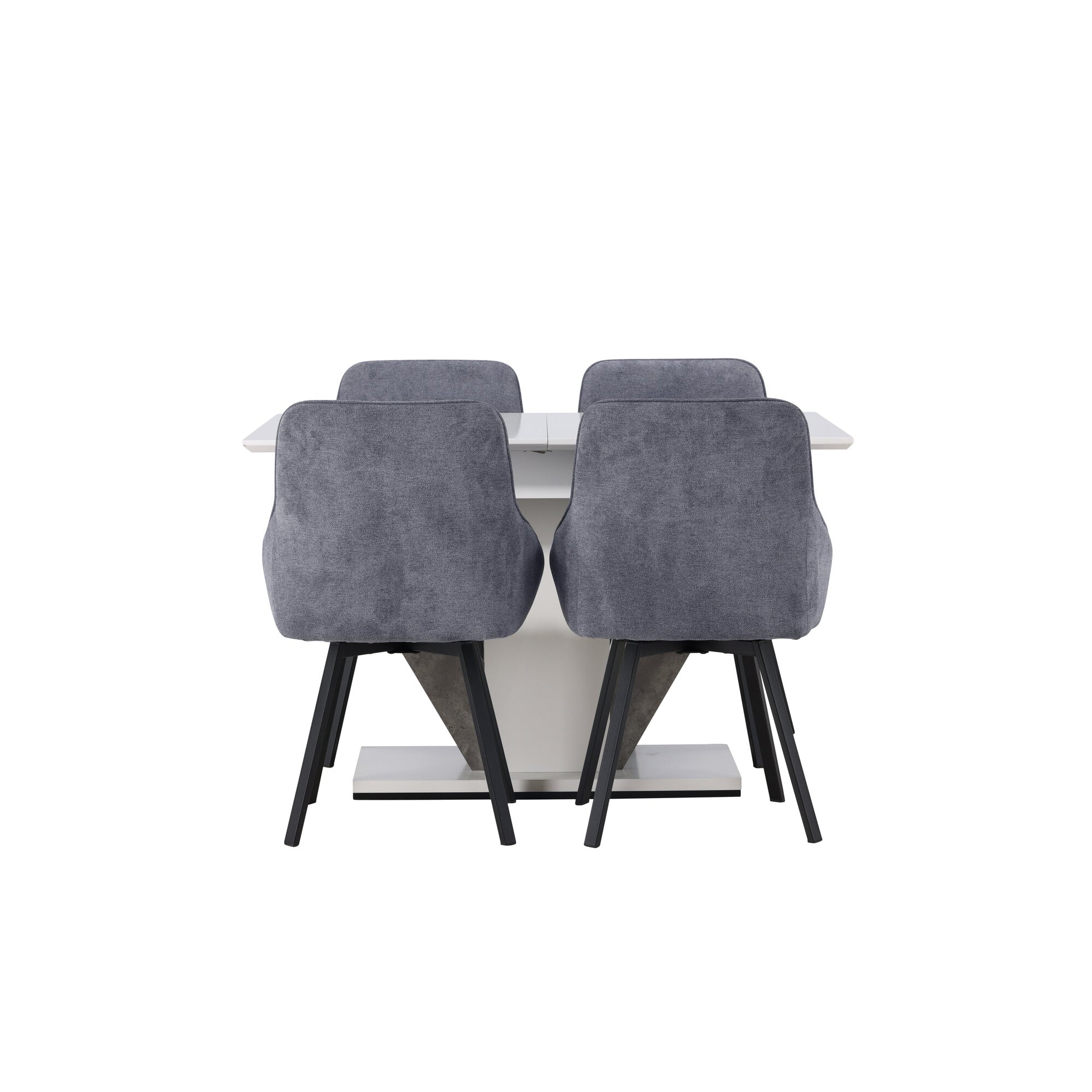 Jídelní stůl Disa 120/160*80 - bílá / šedá MDF + Rosie jídelní židle - černá / tmavě šedá látka _4