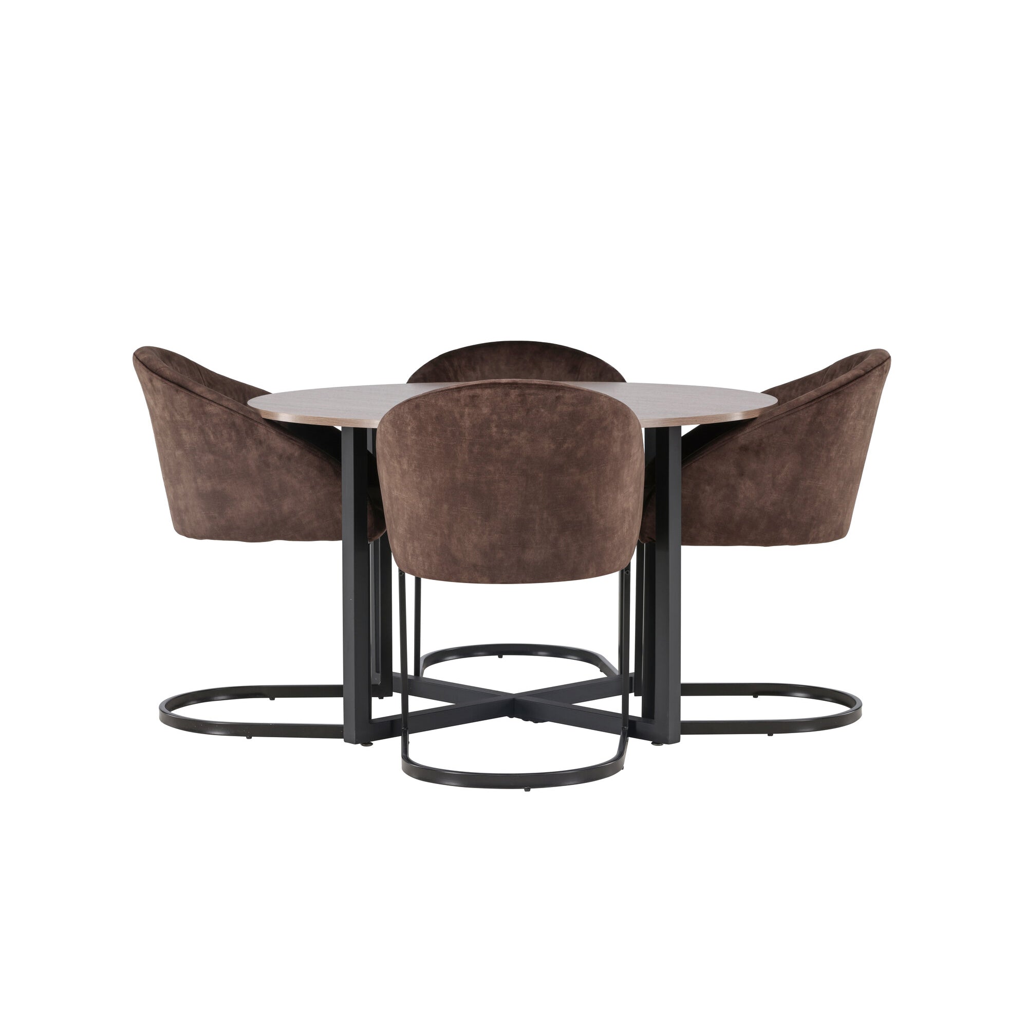 Jídelní stůl Kaseidon - Kulatý - Gumové dřevo / Tmavě hnědá MDF + Jídelní židle Evelina - Černá / Světle šedá Velvet _4